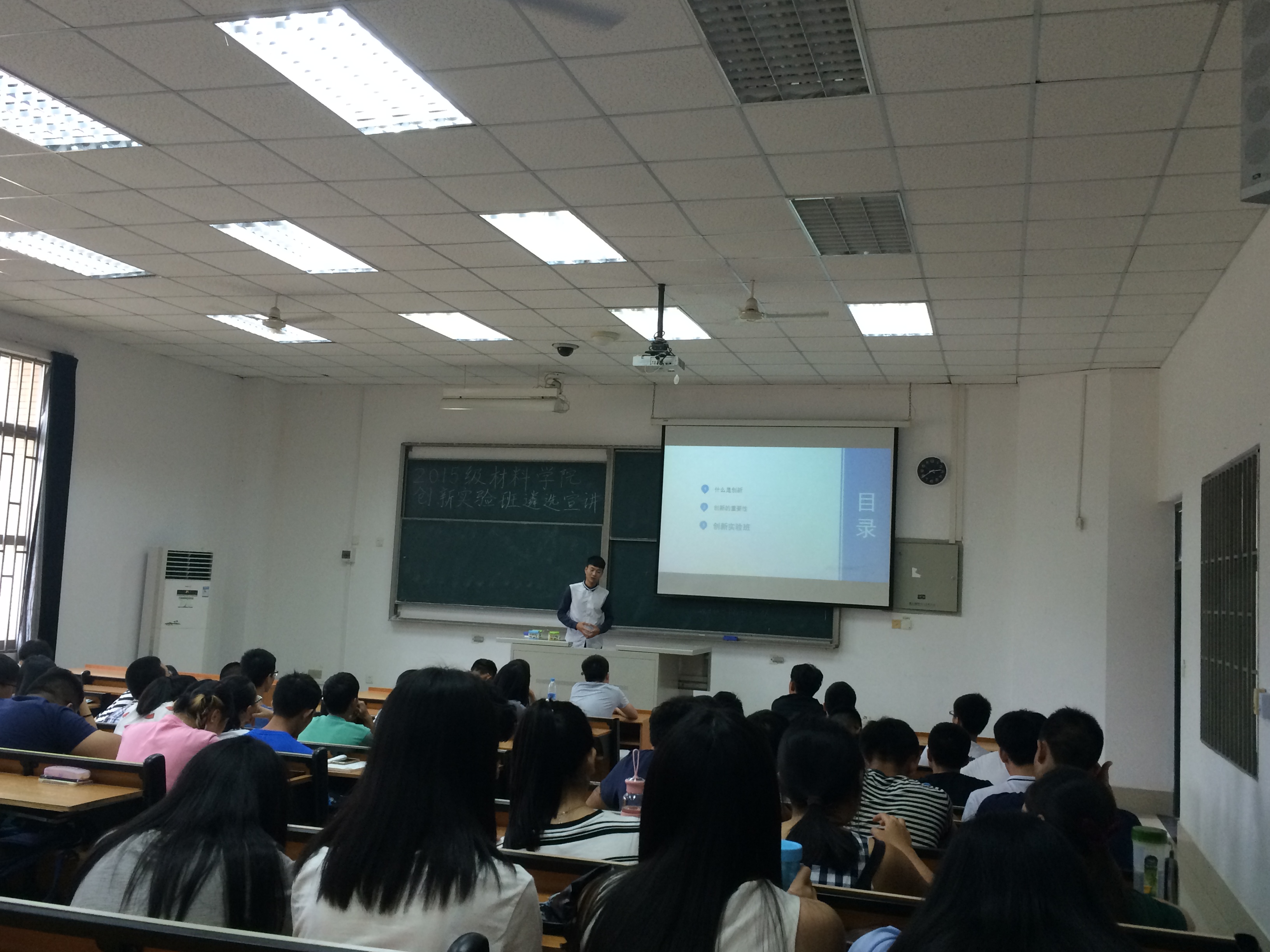 宣讲会伊始,陈俊锋老师阐述了成人影片 建立创新实验班的目标与意义,该班以小班精英教学模式,以学生创新能力培养为核心,旨在培养材料科学与工程专业创新能力强、实践能力强的复合型拔尖创新人才。接着陈俊锋老师又从创新实验班的权利与义务两方面详细为大家阐述了创新实验班的优势与丰富的资源,强调创新实验班是学生继续深造的平台,更注重的是学生对所学知识的巩固与应用。同时也详细介绍了创新实验班的选拔流程及要求,及进入创新实验班后的学业及成果要求等等。接着,陈俊锋老师还通过实例向同学们阐述了保研的要求,以及创新实验班在保研方面的优势。并希望同学们敢于挑战自我,培养创新科研能力,牢牢抓住创新实验班的大好机遇,制定大学四年发展规划,积极申报创新实验班。最后,由13级创新实验班的李宝生、谢虎成两名优秀的学长分享自己加入创新实验班亲身经历与感受,进一步加深了15级同学们对创新实验班的了解。