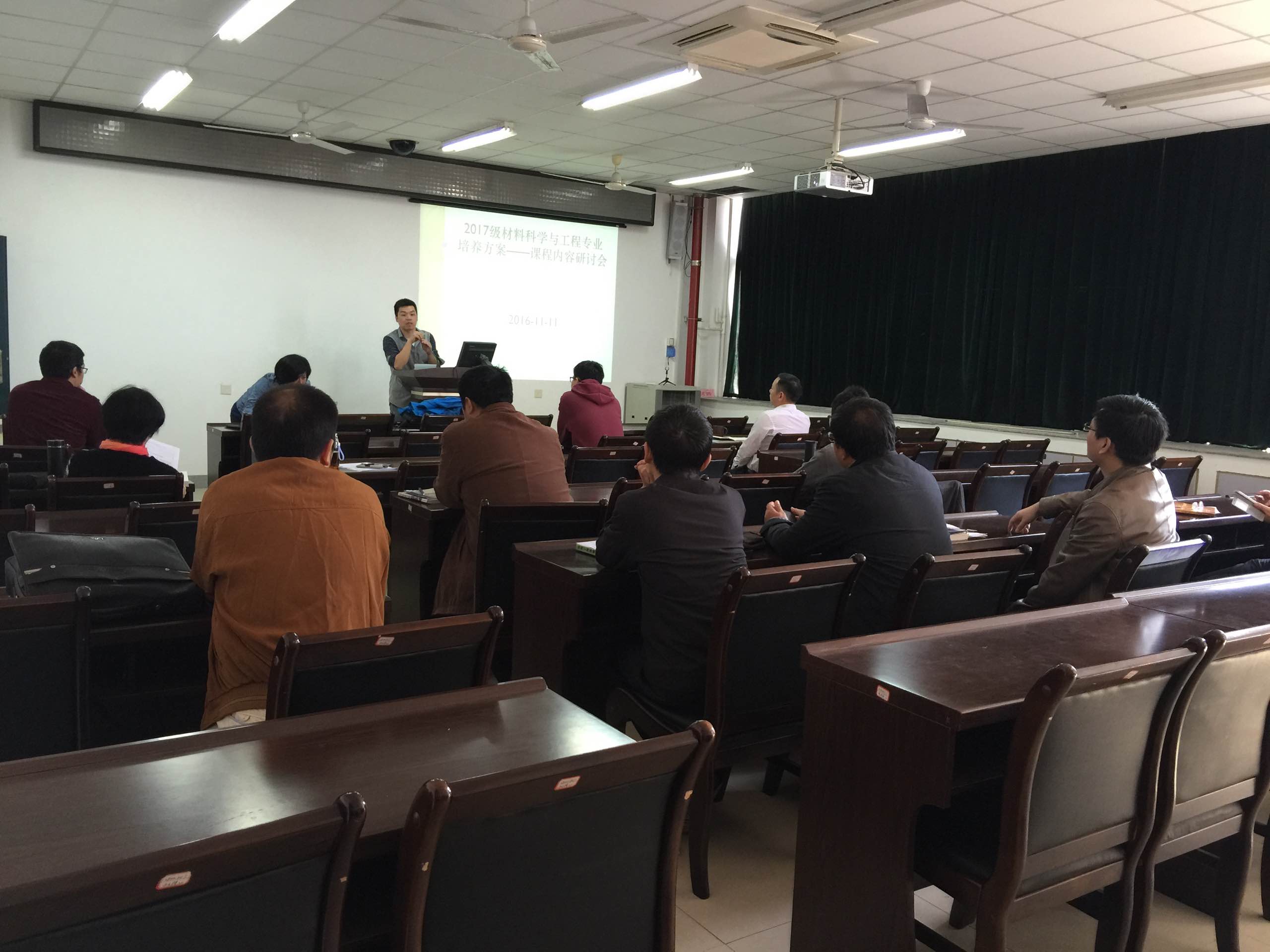 于2016年11月11日下午在材料楼404会议室召开材料科学与工程专业2017级培养方案讨论会,主要针对2017级专业必修课程的内容梳理整合及知识体系的衔接。参会人员有系主任林枞老师、系副主任萨百晟老师、系秘书王成勇老师、材料专业必修课程负责人和专业新进教师。会议由林枞老师主持。