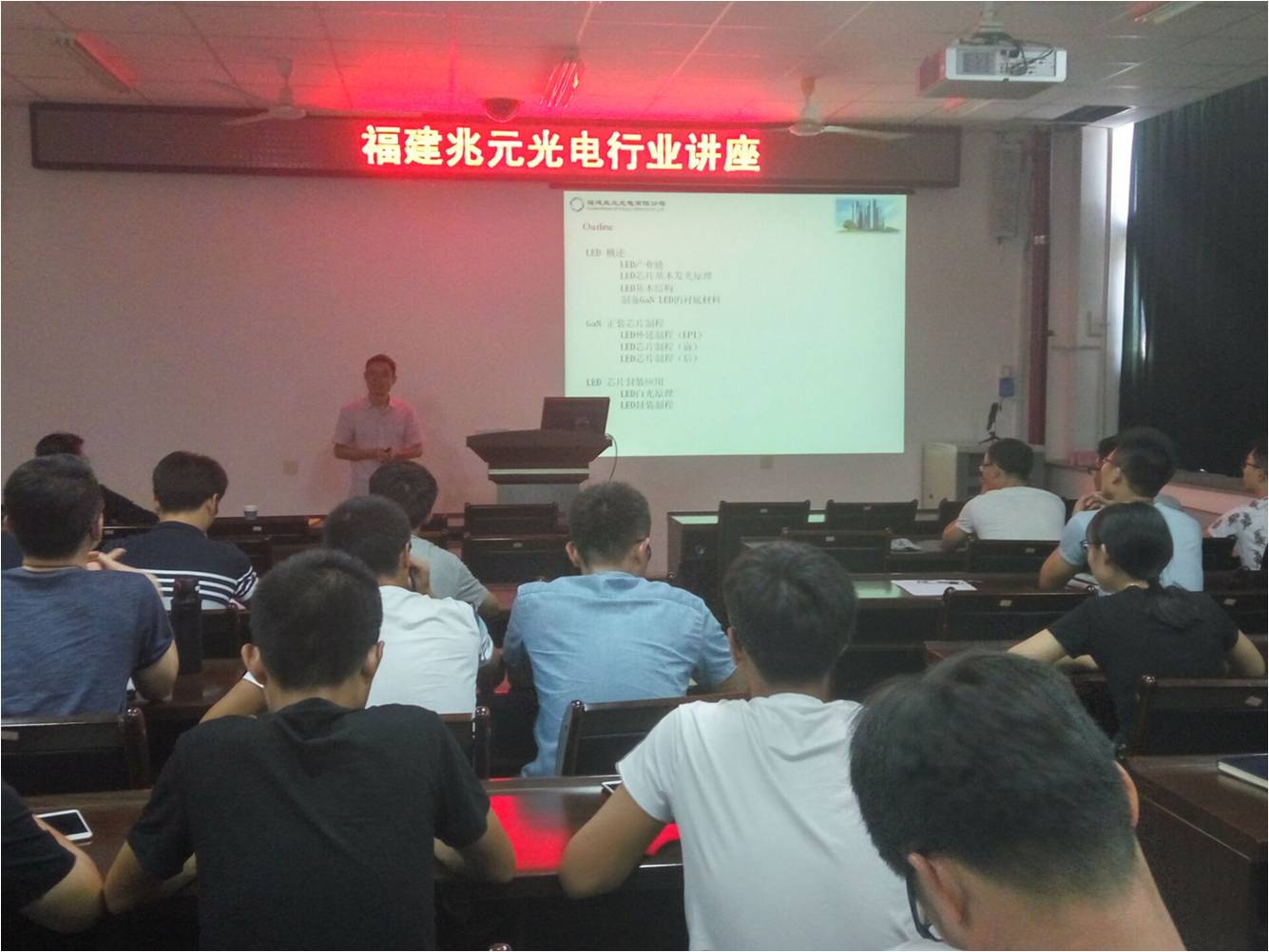 9月27号下午,福建兆元光电有限公司的技术高工和人力资源经理在材料楼404为成人影片 师生作题为“LED芯片的工艺流程及发展前景”的行业讲座。报告会由专业学位点负责人汪炳叔老师主持,学院教师和研究生积极参加了报告会。