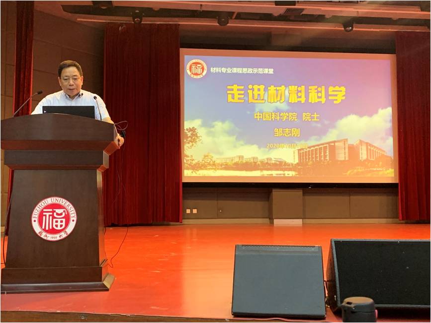 10月10日,中国科学院院士、成人影片 院长邹志刚院士在成人影片 博学厅为成人影片 2020级新生讲授第一门专业导论课《材料科学前沿与商业应用》,他用“走进材料科学——漫谈我们身边的材料”作为主题,从人类进化发展史讲起,展示了人类在不同阶段利用的不同能源,同时也展示了化石能源大量消耗引起深刻的环境问题和能源结构巨大调整,由此给材料人带来新机遇——新型能源的利用。氢能作为目前国际公认的最清洁、最高效、最无尽的新能源代表,其开发和应用成为各国都非常重视的研究领域。邹院士及其团队首次在世界上成功地开发出可见光响应型水分解光催化材料,构建出太阳能转换效率达到8%以上的光热耦合光催化分解水产氢原型装置,除了解决能源问题以外,还在生物医疗、环境优化、军用装备和太空探索等多个方面都取得重大突破。