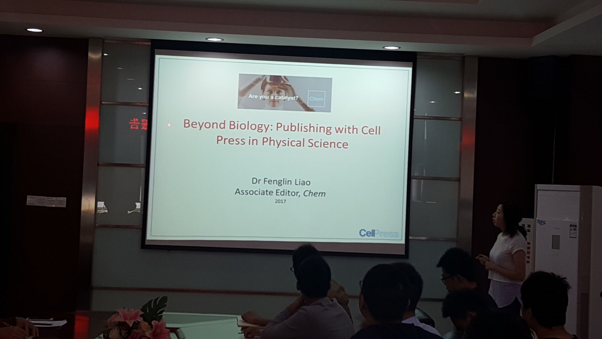 2017年11月17日(周五)上午10:00,Chem杂志副主编廖凤麟博士在嘉锡楼313为成人影片 师生带来了一场题为“Beyond Biology:Publishing with Cell Press in Physical science”的学术报告。成人影片 青年教师和研究生积极参加。报告由成人影片 徐峰老师主持。