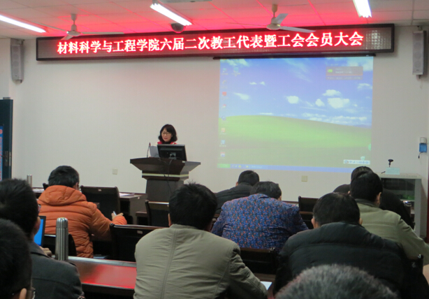 2016年1月21日下午,成人影片 第六届第二次教工代表暨工会会员大会在材料科学楼404会议室隆重召开。本次会议应出席人数59人,实际出席人数56人,符合会议议程。会议由成人影片 副院长于岩同志主持,会议听取并审议了院长工作报告、院工会工作报告;听取审议院财务收支情况报告和院工会财务收支情况报告。
