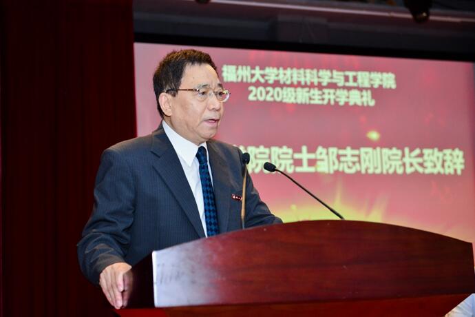 在全体师生奏唱庄严激昂的国歌后,邹志刚院长发表了热情洋溢的致辞,他代表学院热忱欢迎2020级新生的到来,向同学们提出了三点殷切希望:一是注重品德修养,心中要有情怀。希望我们新时代的材料人能够把个人的前途命运与国家、民族、社会紧密地融合在一起,建设福大、服务祖国。二是适应角色转换,手里要有方法。希望同学们以最大的热情、钻研的态度好好学习本专业,把学习当作一种乐趣,好好享受科学的奥妙,勇于尝试,不让时间荒废。三是要志存高远,学以报国。把个人发展融入国家发展伟业和民族伟大复兴之中,做新时代的奋斗者,做民族复兴的实干家,努力成为德智体美劳全面发展的社会主义建设者和接班人。