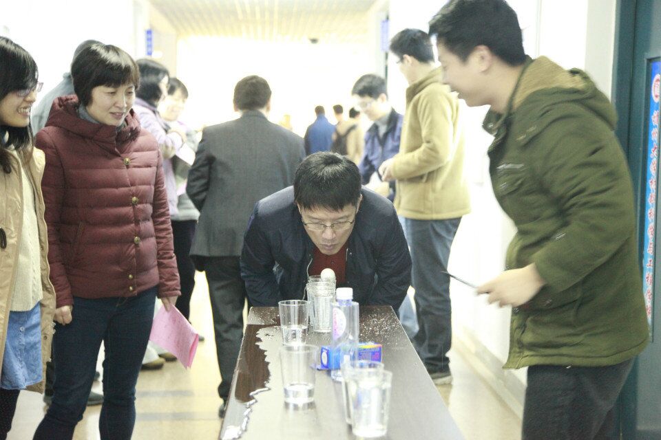 活动现场设有5项游戏:百发百中、过犹不及、步步为营、小李飞镖、幸运沙包。教师们参与热情高涨,每个项目旁边除了工作人员、还有费力“指导”、加油鼓劲的老师。在过犹不及项目中,要求游戏者站在桌子一端,手不能超过规定区域用手推杯子,使其往另一端运动,以杯子停在中奖区域为获胜。教务处处长、原成人影片 副院长于岩教授顺利过关。唐电教授在表演吹乒乓球游戏,告诉其他老师游戏过关的经验。“通过啦!”成功的老师都忍不住欢呼起来。活动现场的每一个项目,老师们都玩得不亦乐乎,脸上洋溢着快乐的笑容。