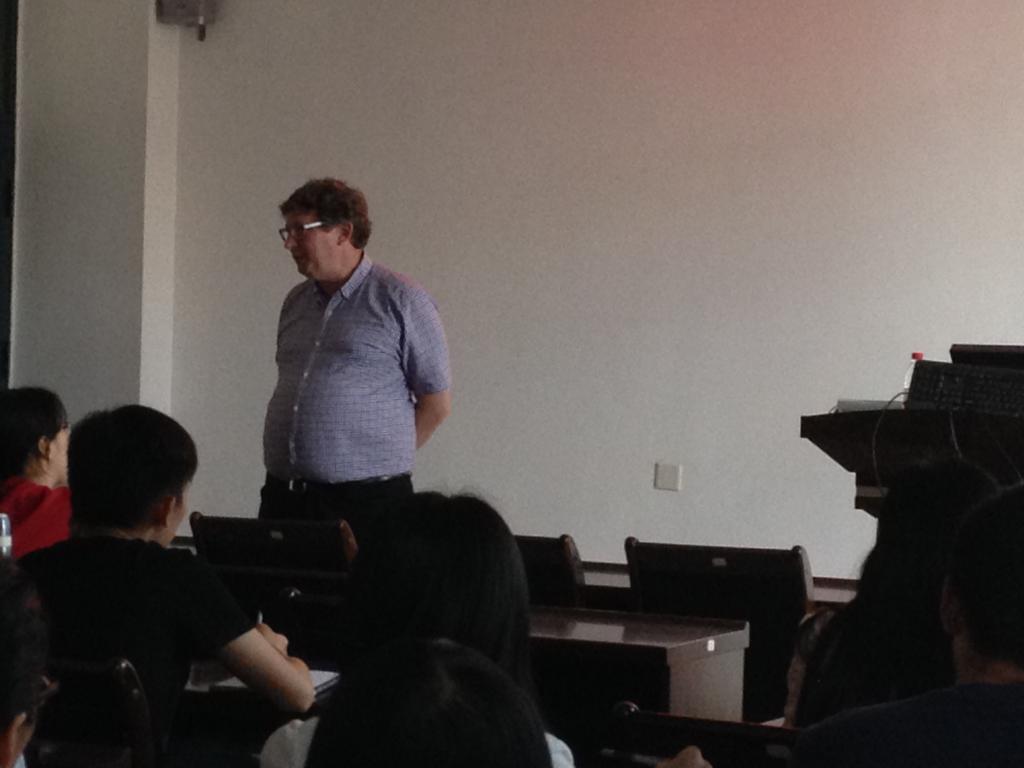 Dove教授在材料科学楼404会议室作了题为“An introduction to neutron scattering”和“Studying for a PhD in London”等系列报告。Dove教授简要介绍了中子散射在材料研究中的作用,以及实验测试与结构模拟的自洽;鼓励同学们充分利用国内有利的测试手段,努力攀登材料学研究的高峰。另外,他就赴英攻读博士的注意事项与师生进行了热烈交流,激发同学们积极参与国际交流合作,加强跨学科、跨国际学习,自我培养和完善,做好个人职业规划。大家受益匪浅。此外,Dove教授对联合培养等相关问题进行了解答,并欢迎老师同学们赴英交流。