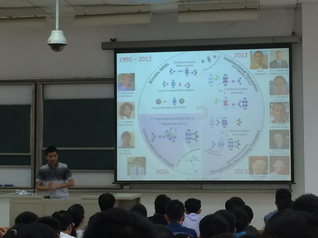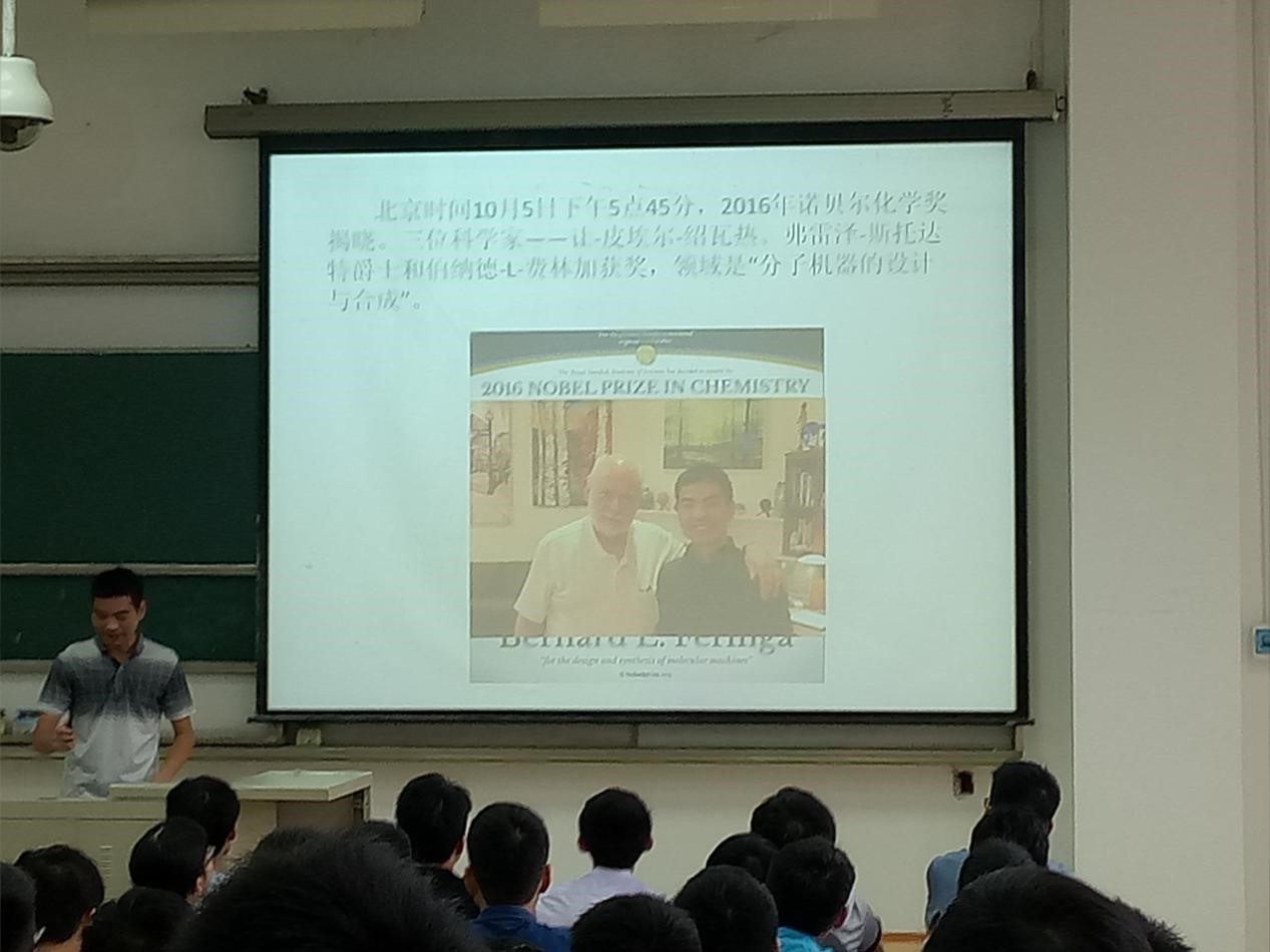 10月20日,成人影片 在东3—109教室举办了题为“2016年诺贝尔化学奖背后的故事——分子机器的设计与合成”的学术讲座,由成人影片 闽江学者特聘教授陈栋阳教授主讲。成人影片 师生齐聚一堂,聆听报告,交流研讨。