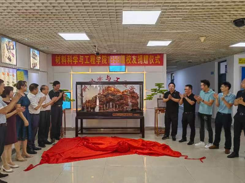 仪式伊始,校友代表余永德,陈文哲老院长和倪朝霞书记分别致辞。真材实料扬帆起,千锤百炼方成钢,校友代表余永德期望新一代材料人能够秉持“材料报国、强国有我”的理想信念,扬帆起航,同时祝愿学院发展越来越好。陈文哲老院长在致辞中简单回顾了成人影片 创立及发展的艰难历程,正是有了历任领导的励精图治、全体师生的共同努力和一届届心中挂念母校的校友们,才有了如今焕然一新的实验楼、实验室和众多优秀的成果。随后,双方代表共同为捐赠品根雕揭幕,倪朝霞书记也表达了对校友这份“感恩母校、倾心回馈”的情怀和善举表示衷心的感谢,学院定会用优异的成绩,报答社会的关怀之情,不辜负社会各界的殷切期望。
