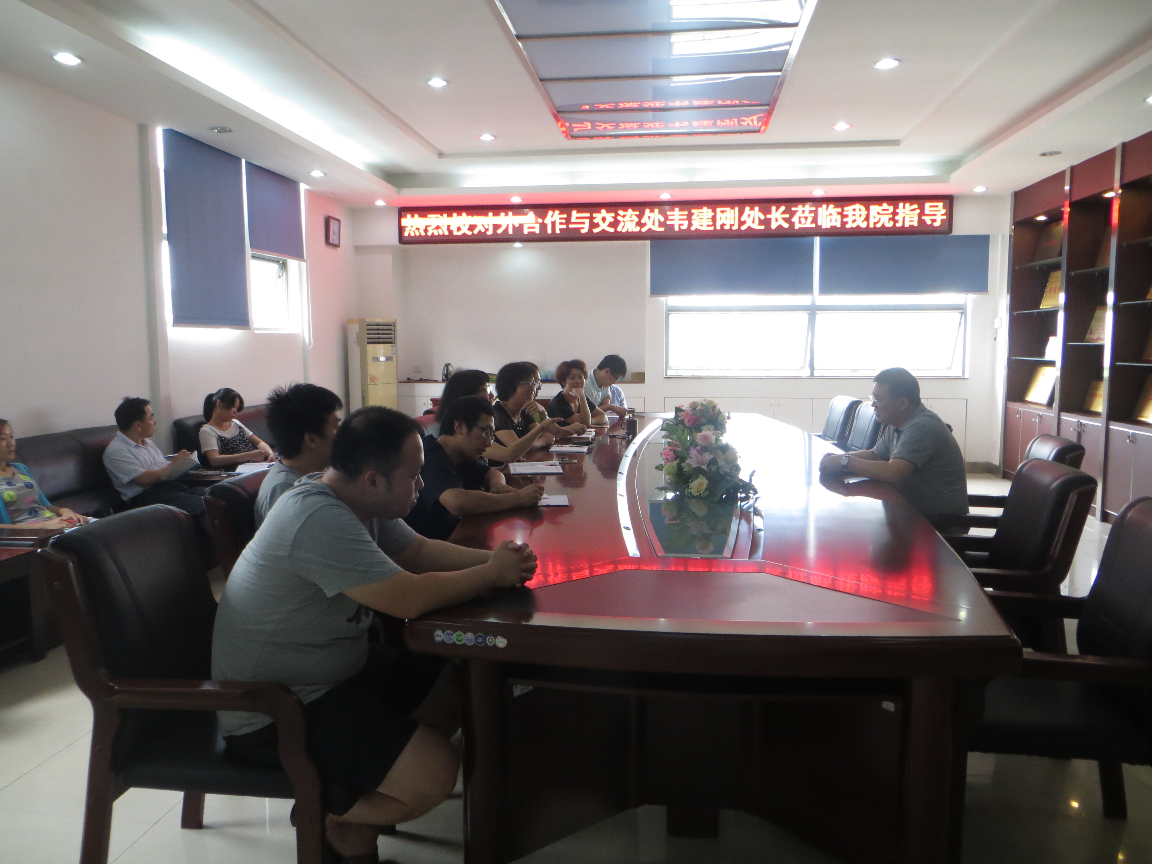 2015年9月2日,我校对外合作与交流处韦建刚处长莅临成人影片 ,就国际化办学与成人影片 教师进行座谈。参加本次座谈会的有成人影片 党委徐雪玉书记、詹红兵院长、于岩副院长以及成人影片 部分骨干教师。