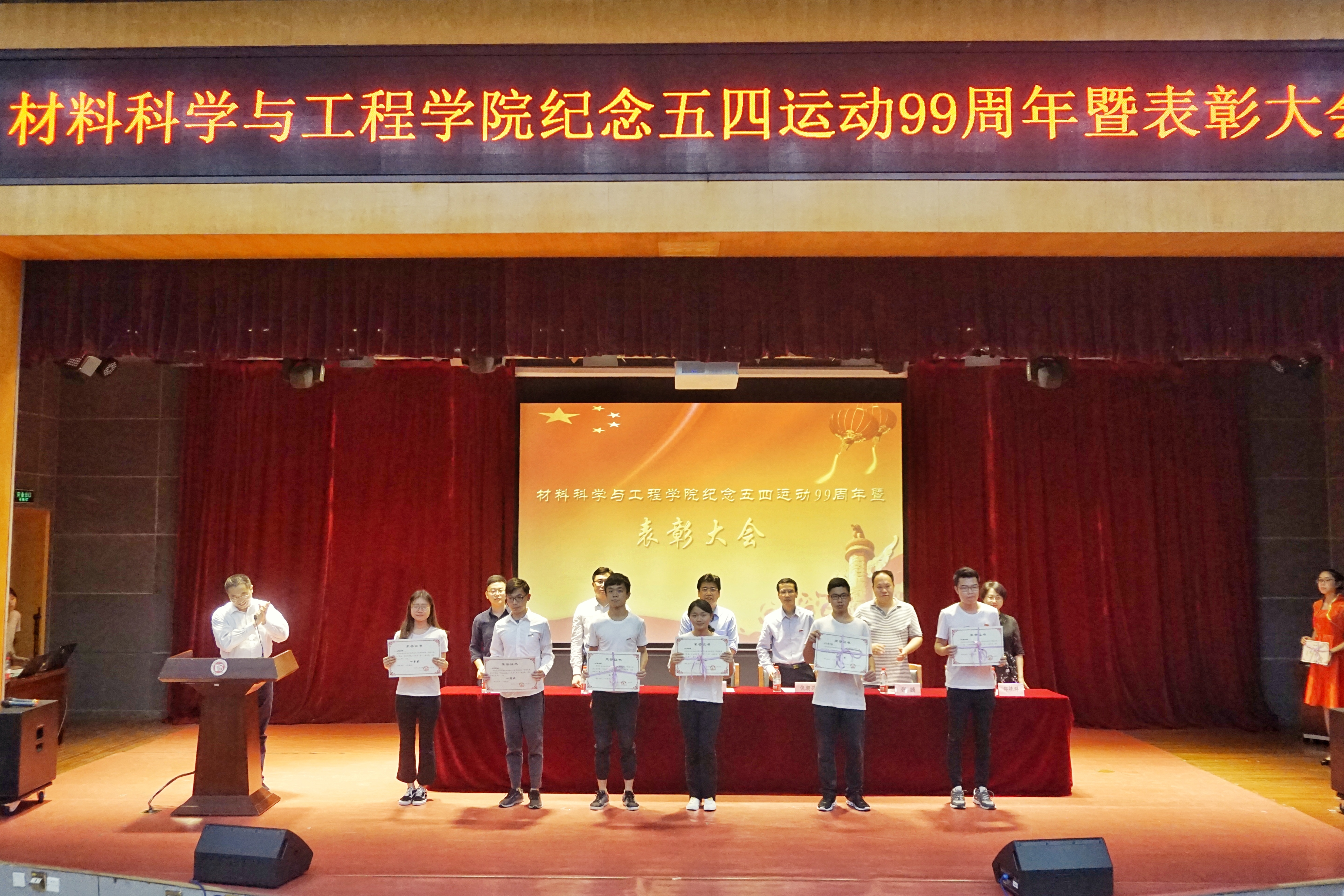 5月9日,成人影片 纪念五四运动99周年暨2017年度共青团工作表彰大会在图书馆明德厅隆重举行。本次表彰大会由院党委副书记王剑龙主持,邀请了学院党委倪朝兴书记、校学生工作部(处)徐宏志副处长、校团委林航副书记、学院张腾副院长、学院工会主席邵艳群副教授、学院16级优秀班主任代表吴啸副教授出席大会,并为获奖集体和个人代表颁奖。