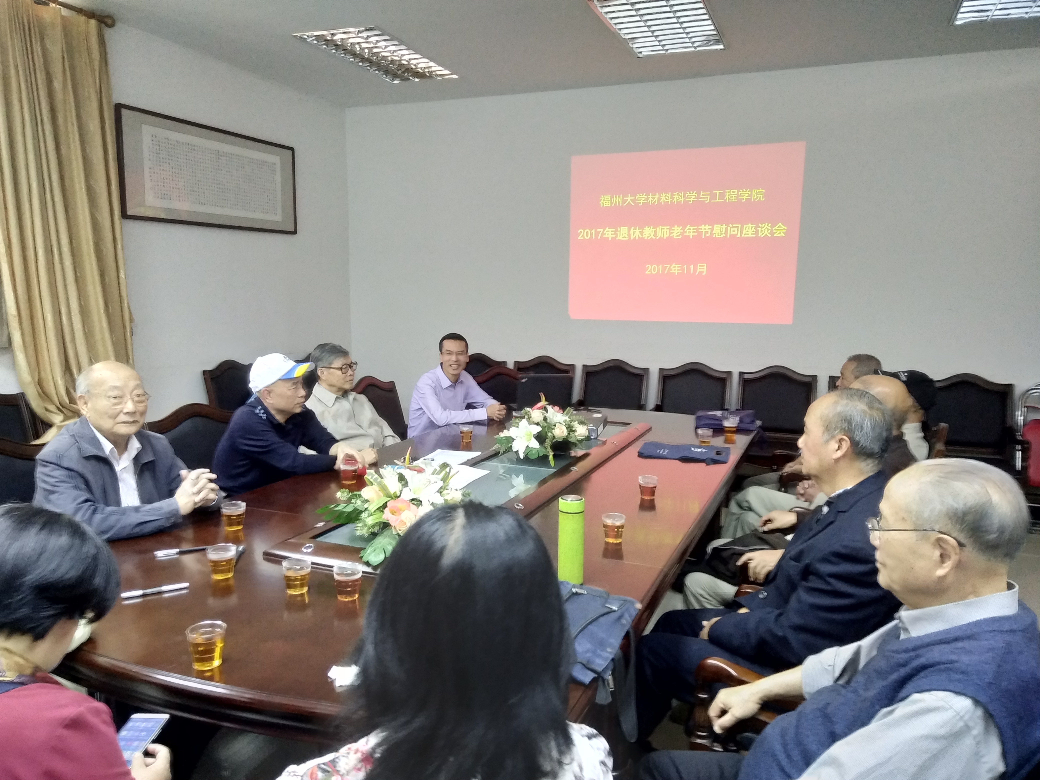 11月2日上午,学院在怡山校区教工食堂会议室召开2017年退休教师老年节慰问座谈会。院党委书记倪朝兴副教授、院工会主席邵艳群副教授以及学院退休教师参加了会议。