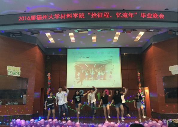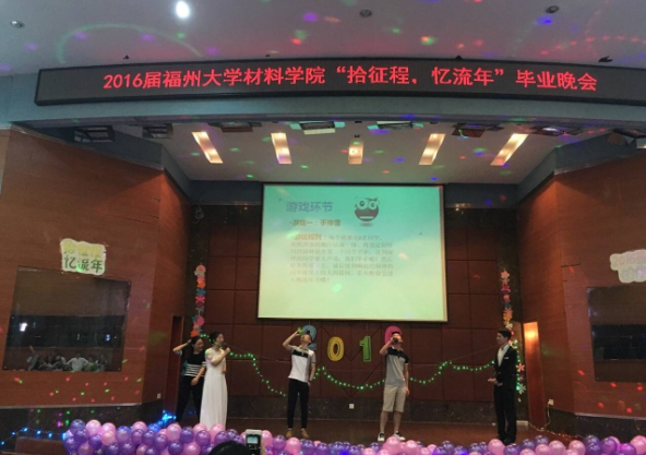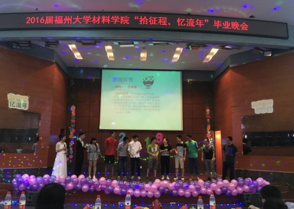 6月17日晚,“拾征程,忆流年”我院2016届毕业晚会在嘉锡厅圆满落幕。出席此次晚会的嘉宾有院党委副书记王剑龙老师及各年级辅导员,大四的毕业生、部分低年级的同学观看了此次晚会,黄晓萍、张思维、朱旺斌、林叮枫四人主持本次晚会。