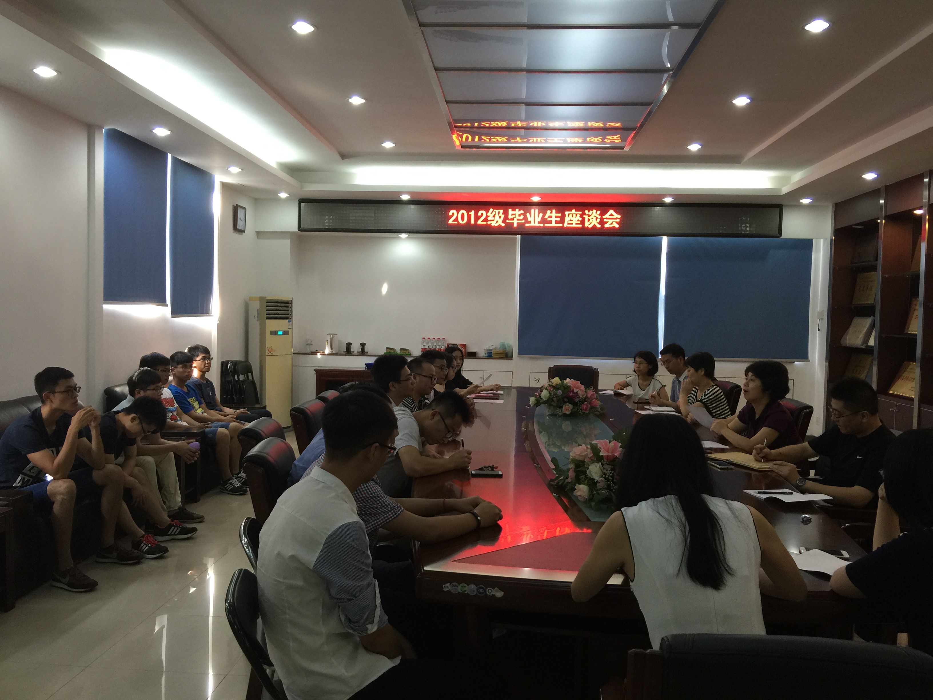 2016年6月20日,成人影片 在嘉锡楼313会议室召开2012级毕业生座谈会。院党委书记徐雪玉、院党委副书记王剑龙、分管教学副院长于岩、系主任、学工组、实验中心、2012级班导师及毕业生代表参加了本次座谈会。本次座谈会由分管教学副院长于岩主持。