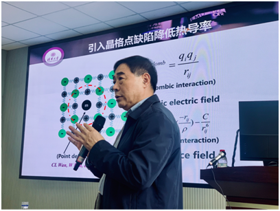 接着,潘伟教授从材料学点缺陷知识和晶格/光子传热机理入手,系统介绍了陶瓷热导率变化的影响因素,提出了降低陶瓷热导率、提高热膨胀系数、改善高温热稳定性的原理和方法。并结合近年来工作详细讲解了在复杂氧化物结构中引入点缺陷来大幅降低热导率的研究成果。