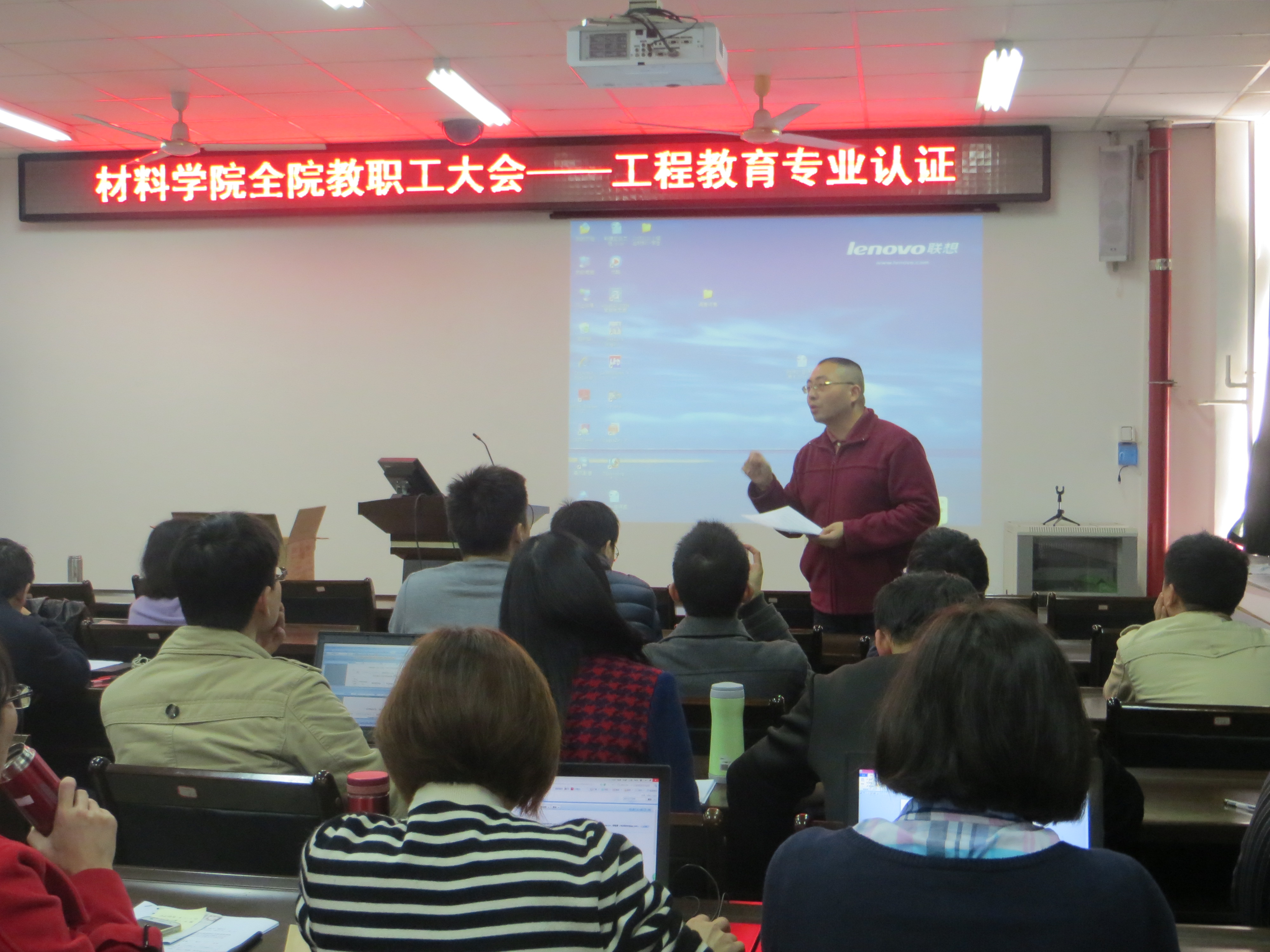 2016年1月4日下午,成人影片 全体教职工大会—工程教育专业认证会议在材料楼404会议室召开。院党委徐雪玉书记、詹红兵院长、王剑龙副书记、于岩副院长出席了此次主持此次会议,参加此次会议的还有成人影片 全体教职工。