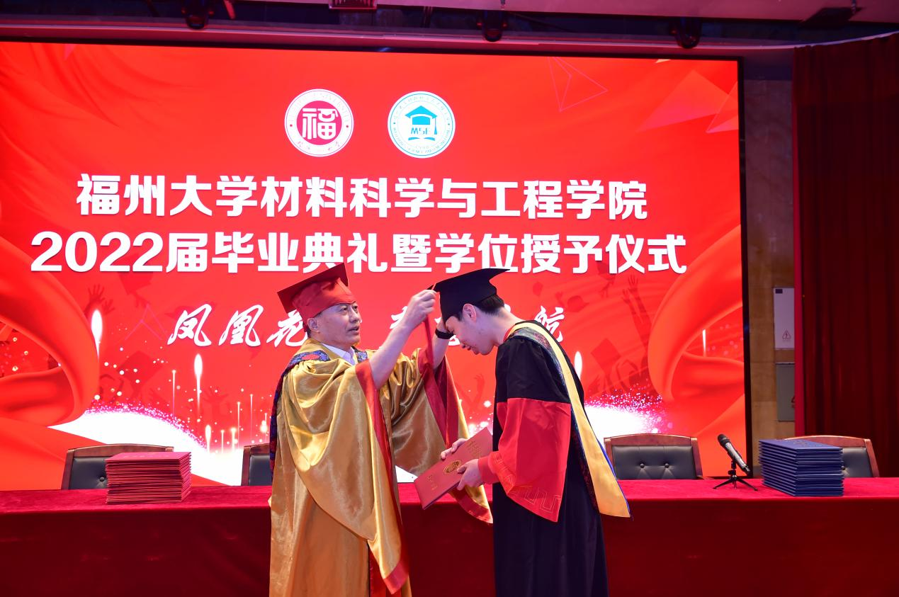 随后,院长张久俊院士致辞,对毕业生表达真诚的祝贺,并提出三点希望:一是坚定跟党走,开启新征程,把民族复兴的使命铭记心中;二是青春向未来,彰显新担当,把开拓创新的责任扛在肩上;三是紧握接力棒,矢志新奋斗,把踔厉奋发的力量注入血脉。张久俊院长表示,希望2022届全体毕业生能够时刻牢记福大的“三种精神”,始终秉承“明德至诚,博学远志”的校训和“陶冶品质,淬砺刚强”的院训,向英雄学习、向前辈学习、向榜样学习,用足迹丈量祖国南北的如画江山,用汗水洗礼五四精神的光辉岁月,不负党和人民的殷切期望,争做堪当民族复兴重任的时代新人,成为支撑国家和民族的“擎天柱”,书写无愧于时代的壮丽篇章!