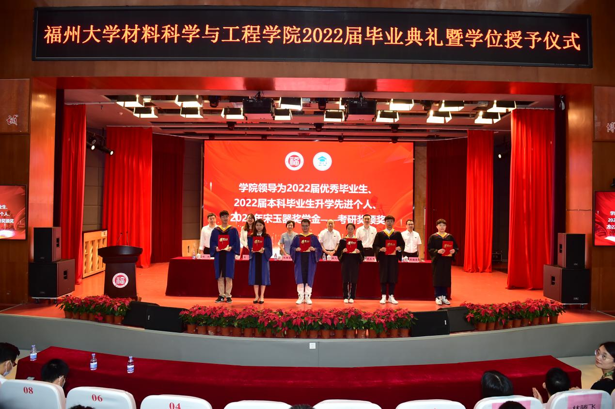 接着,由倪朝霞书记宣读2022届优秀毕业生、2022届本科毕业生升学先进个人、2022年宋玉器奖学金—考研奖及2022年宋玉器奖教金—“我心目中的好老师”表彰决定,并由院领导为获奖同学和老师进行颁奖。
