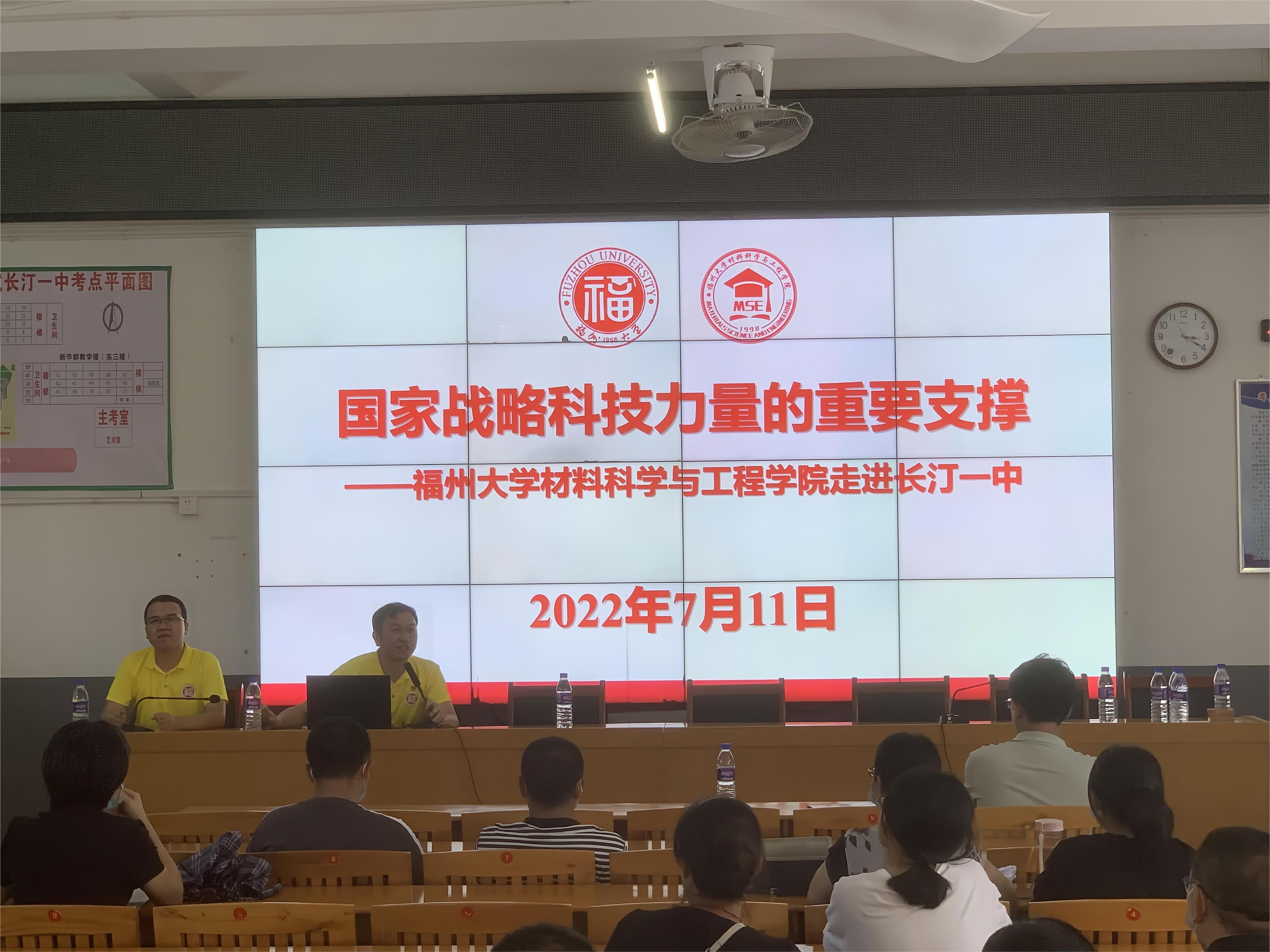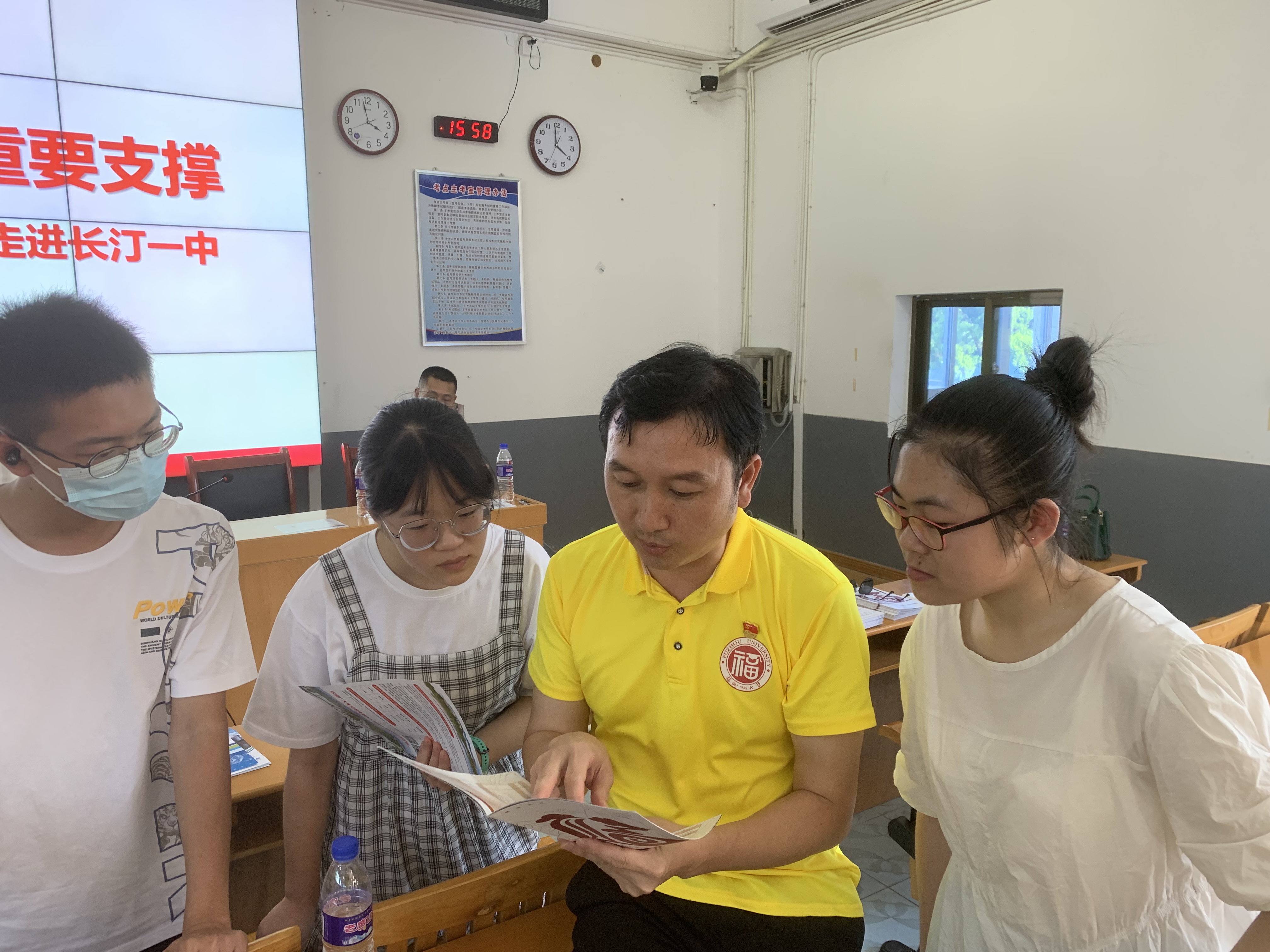 材料是国之重器,是国家战略科技力量的重要支撑。为深入宣传学校、学院高考招生政策与专业特色,指导高考考生科学填报志愿,促进学校、学院吸纳更多优质生源,实践队前往长汀第一中学开展专业宣讲系列活动,与学生及家长进行深入交流,了解当地学生对于未来发展方向、发展现状、自己的目标与理想情况,并加强引导学生对于材料专业方面的关注。