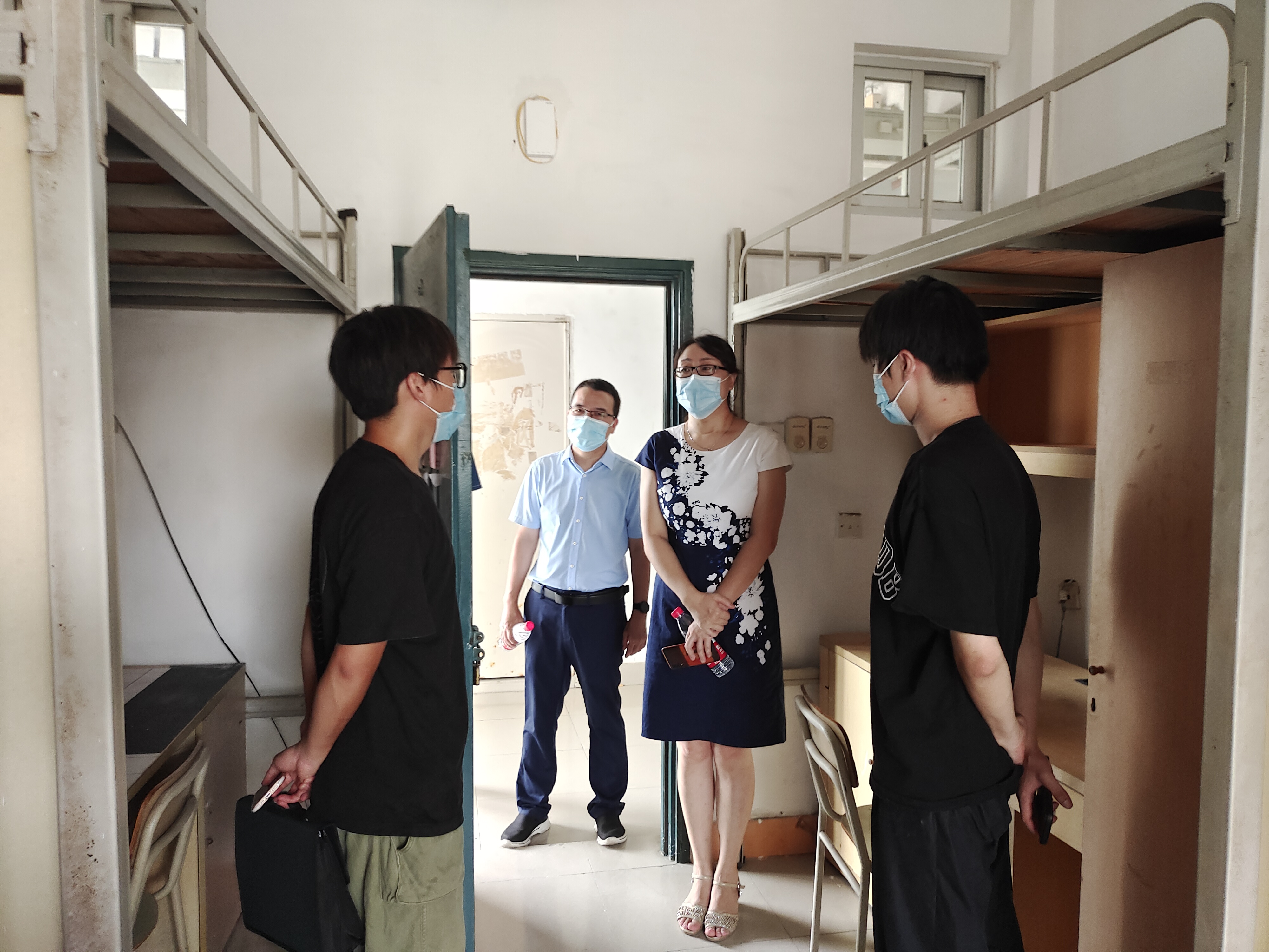 院党委倪朝霞书记、学院袁珮执行院长、林梅金副院长等领导莅临新生迎新点并下宿舍