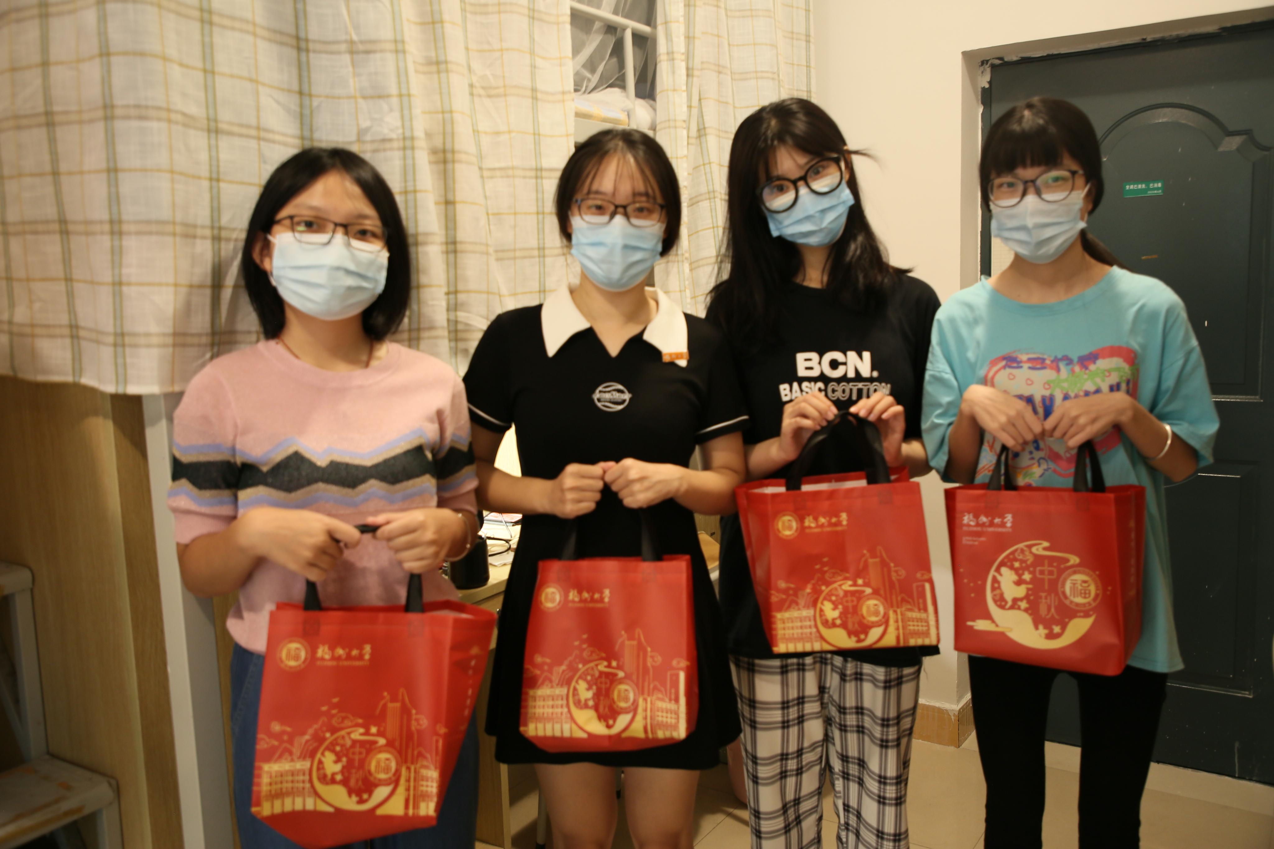 领导心系新生思家之情,赠送月饼等小礼物,为新生营造良好的节日氛围。