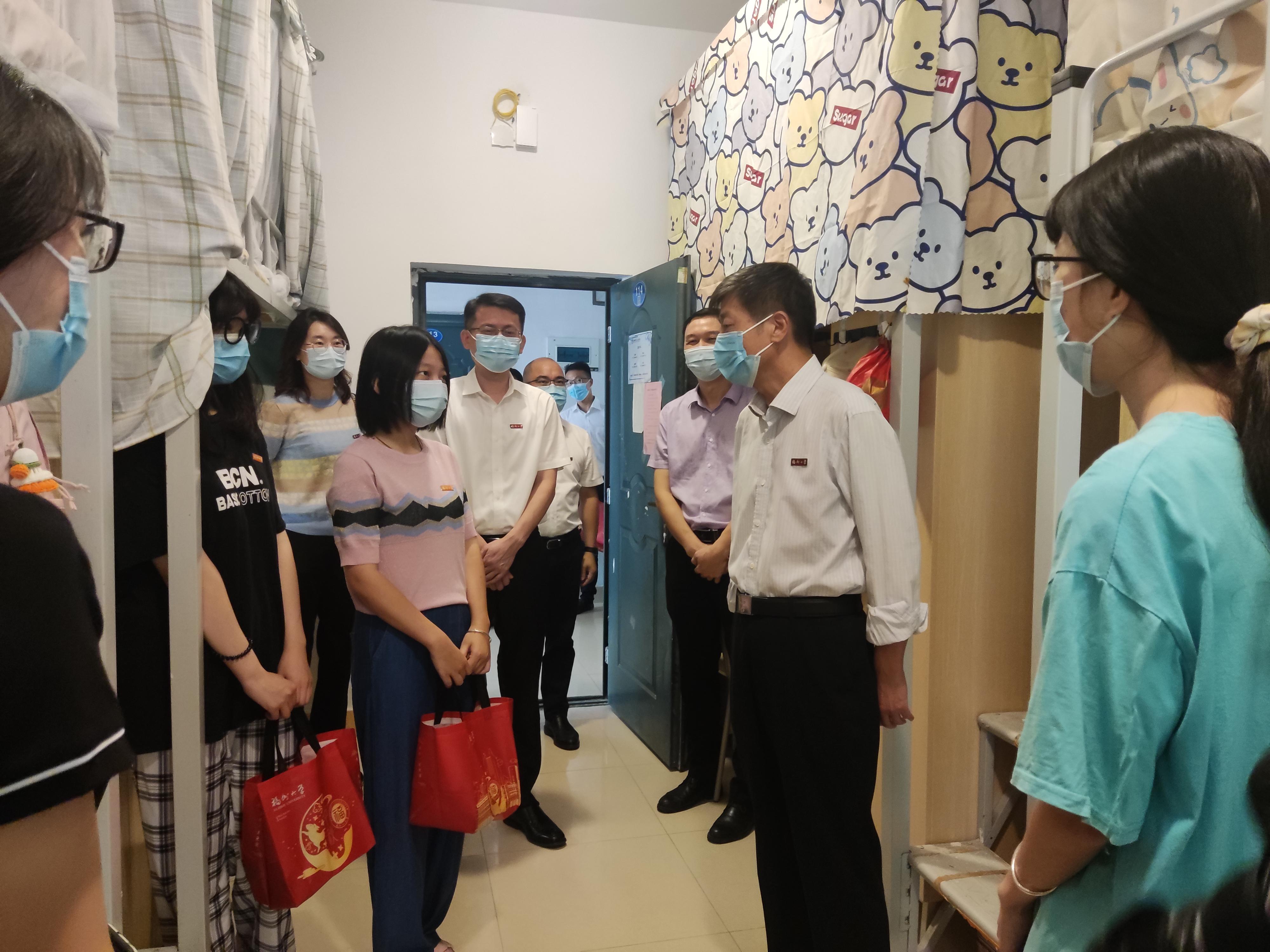 今日,校长付贤智院士、校党委黄身勇副书记等领导在院党委张志忠副书记,王怡老师的陪同下来到成人影片 研究生新生宿舍区关心慰问同学并赠送礼品,带来节日的祝福。