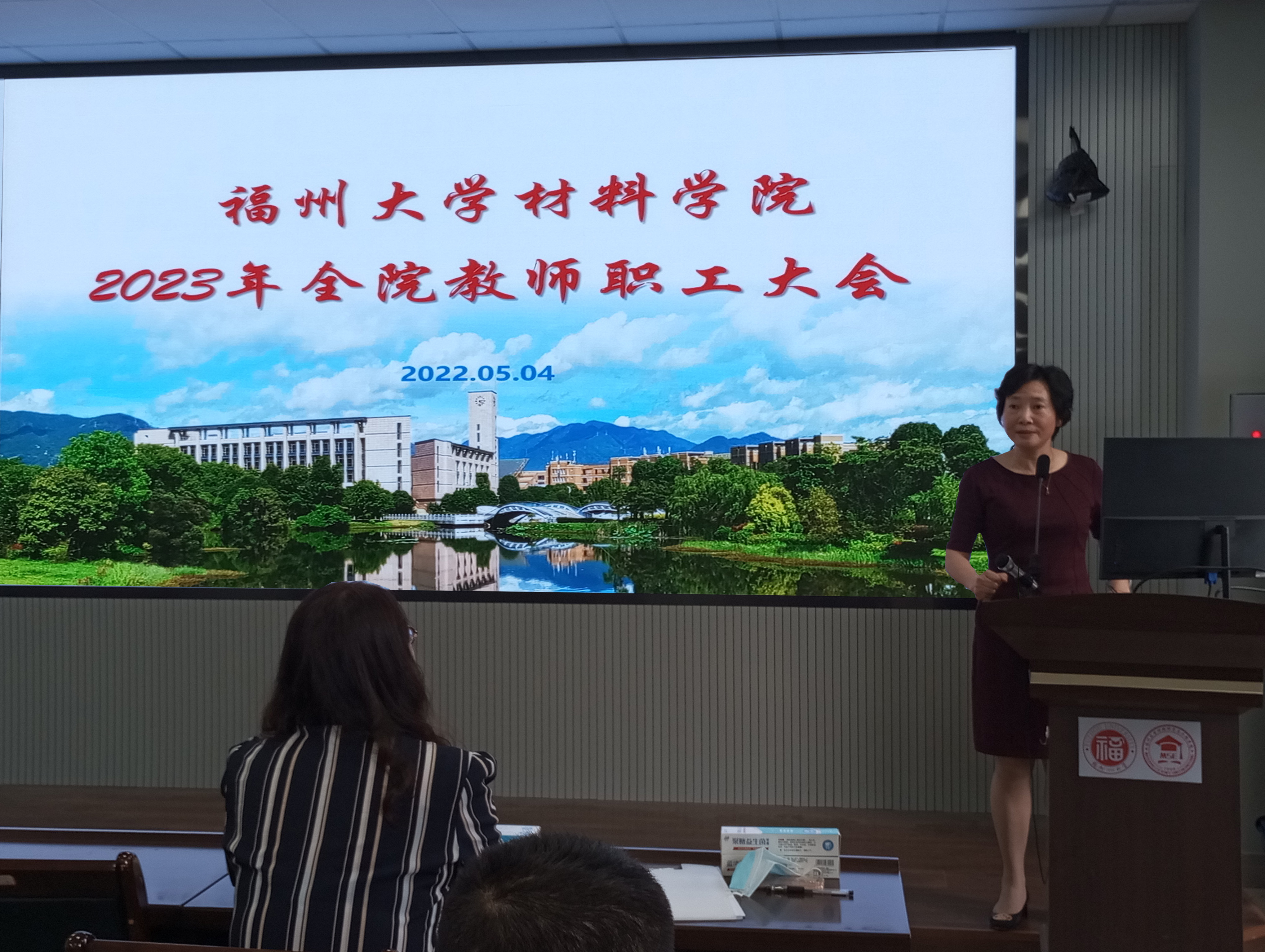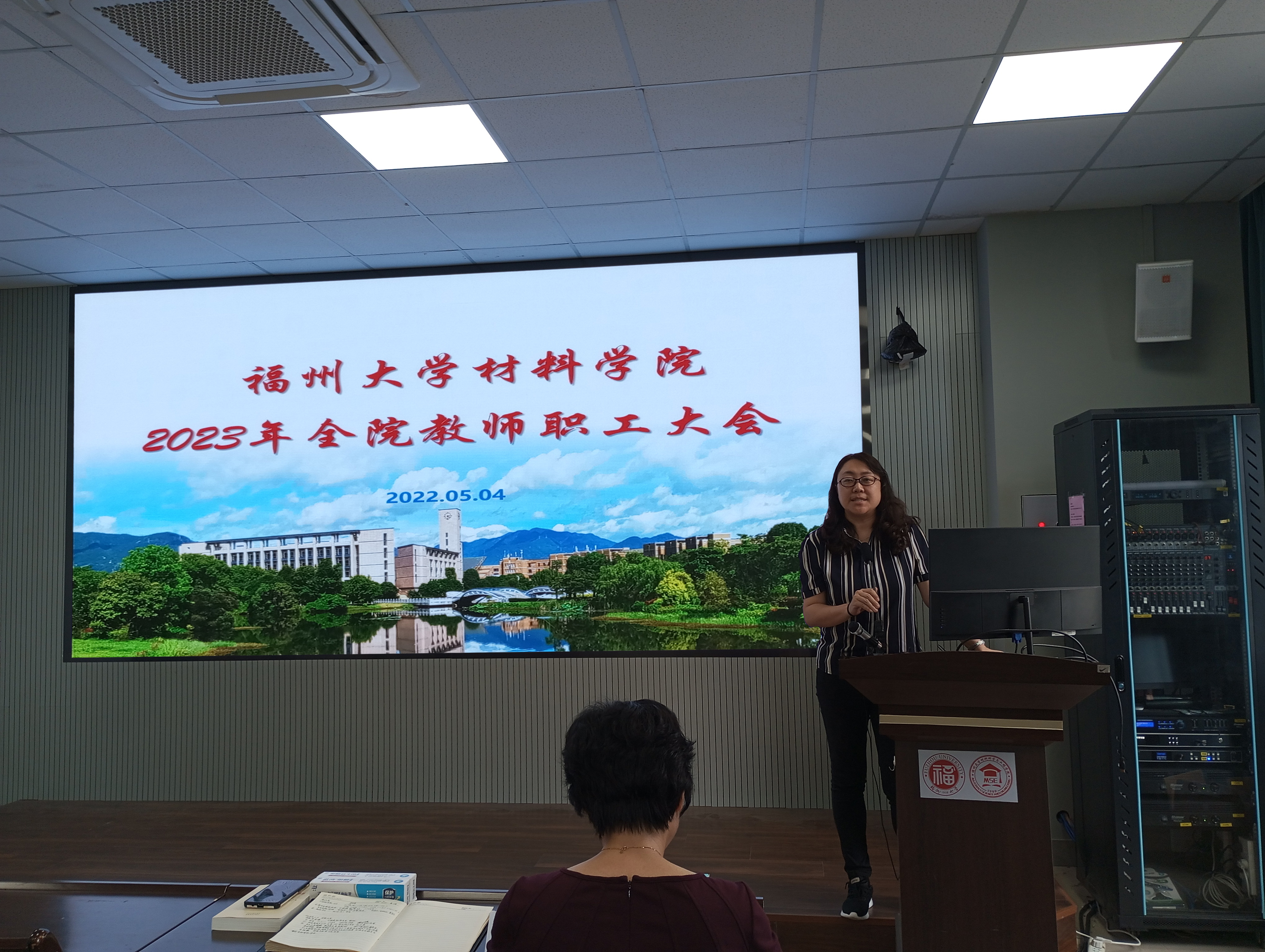 5月4日下午,成人影片 2023年第二次全院教职工大会在材料楼404顺利召开。大会由院党委倪朝霞书记主持。会议伊始,倪书记代表学院热列欢迎三位新教师的到来,并邀请他们上台一一做自我介绍,介绍各自的研究方向和所在研究团队。