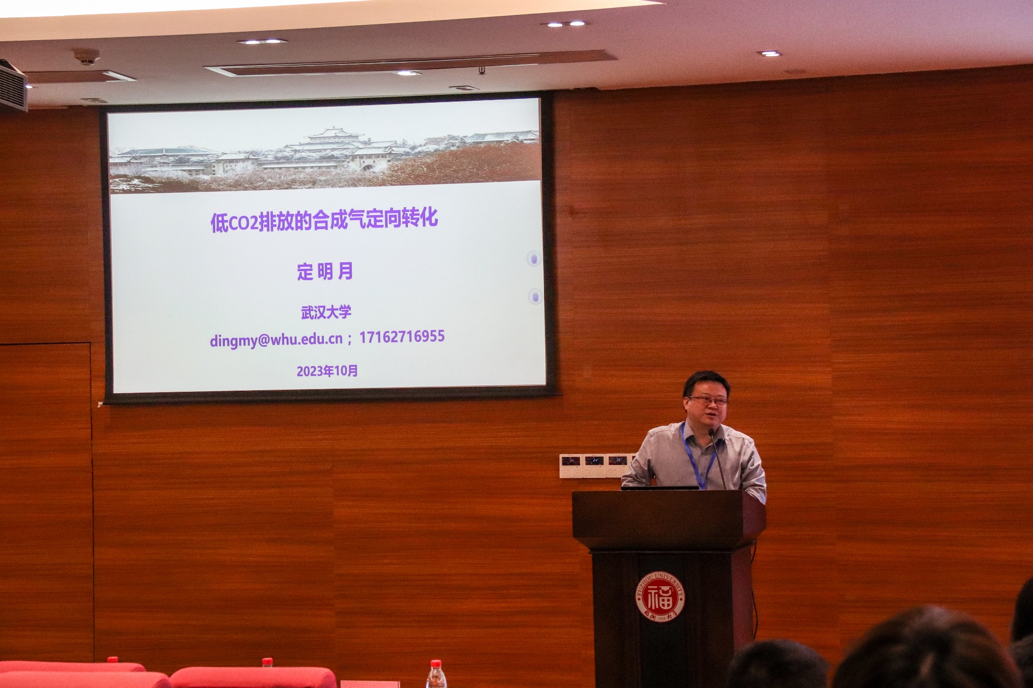 第五个报告来自国家高层次人才,武汉大学的定明月教授,他的报告题目为“低CO2排放的合成气定向催化转化”。为了有效降低费托合成过程中CO2副产物的选择性,提高特定烃类产品产率,定教授课题组发展了疏水界面调控水煤气变换(WGS)反应的新策略,创新性研制了疏水界面Fe基复合催化剂,揭示了CO2副产物抑制机理,实现了CO2高效减排;阐明了Fe基催化剂中活性金属表面电子结构和几何环境的调控机制,发展了双活性中心亲密度调控的新途径,实现了合成气一步法高效制取α-烯烃、芳烃等高附加值化学品。