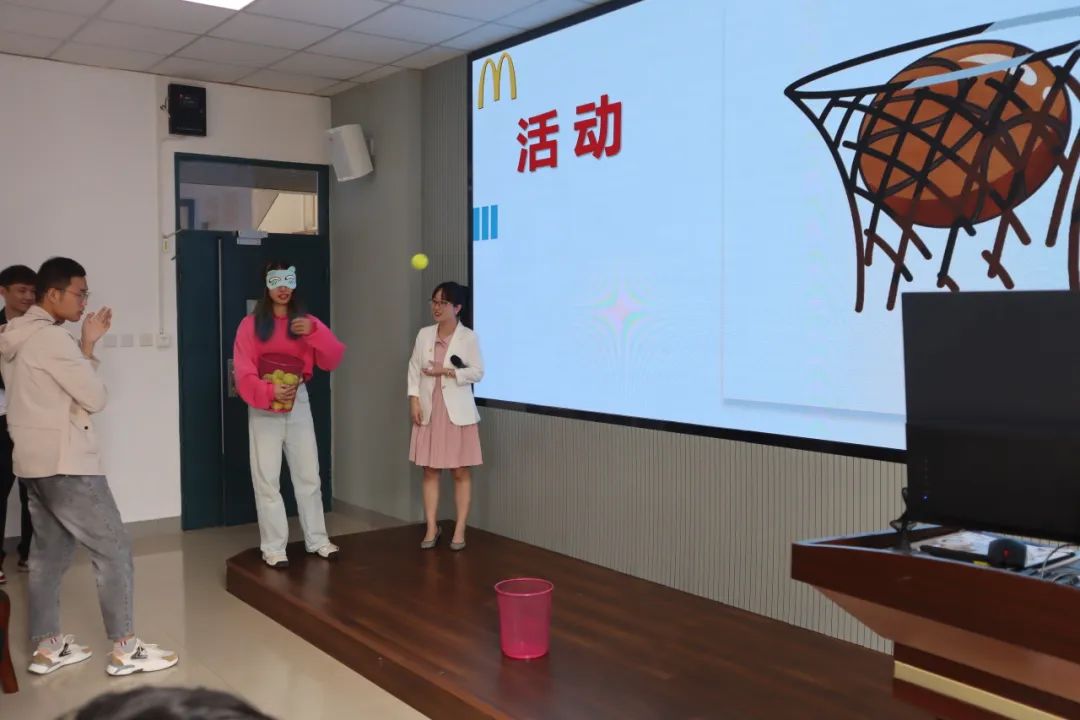 期间,小白老师进行了趣味的“投球”游戏,通过四组“新员工”与“老板”之间不同的反馈情况的对比,同学们切身体会到了赞赏性和发展性反馈在团队合作沟通中的重要性。
