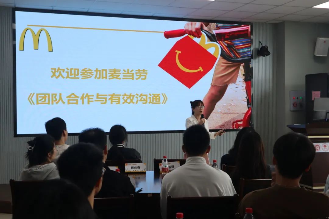 本次授课由麦当劳经验丰富的小白老师主讲,主题为“有效沟通与团队合作”。小白老师首先通过一个简单的“搭积木”游戏引出团队合作成功的关键因素,随后就团队合作的关键因素展开本次课程,小白老师强调,有效沟通的关键在于“聆听”与“互动”。积极聆听是确保有效沟通的基础,而赞赏性和发展性的反馈则是推动有效沟通的“催化剂”。