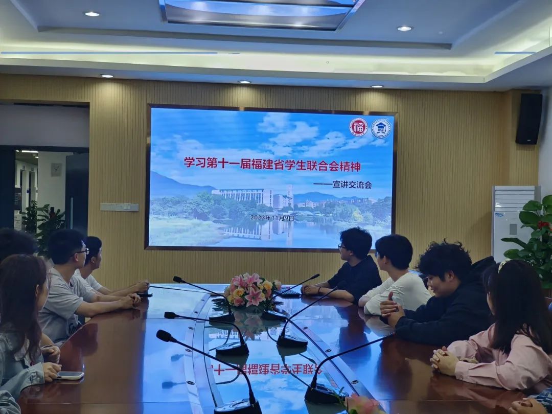 11月9日晚,成人影片 在嘉锡楼313会议室召开学习第十一届福建省学生联合会精神宣讲交流会。会议由郑紫阳主持,学生会部门主要负责人参与。