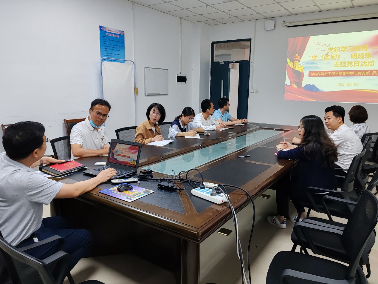 4月30日,成人影片 实验中心党支部在实验楼402会议室召开党纪学习教育“学《条例》、明规矩、守纪律”主题党日活动。学院党委书记罗涛为支部上党纪学习教育专题党课,为支部党员详细讲解新修订《条例》内容。