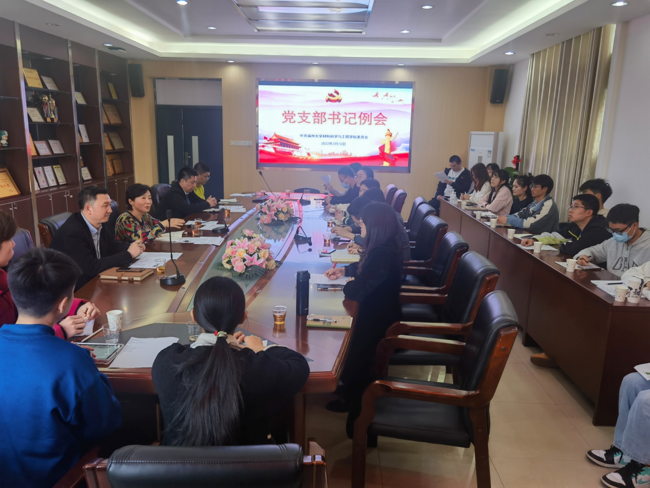 2023年3月16日下午,成人影片 2023年度第一次党支部书记例会在嘉锡楼313会议室召开。学院党委委员、全体师生党支部书记参加了会议。会议由院党委书记倪朝霞主持。