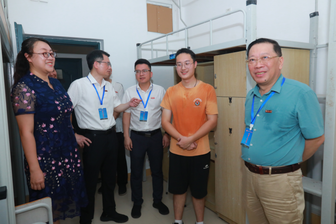校党委陈国龙书记、黄身勇副书记、郭文忠副校长等校领导深入成人影片 新生宿舍关心慰问,与新生亲切交谈,并亲自给成人影片 研究生新生佩戴校徽,勉励同学们珍惜大学时光,实现人生理想。
