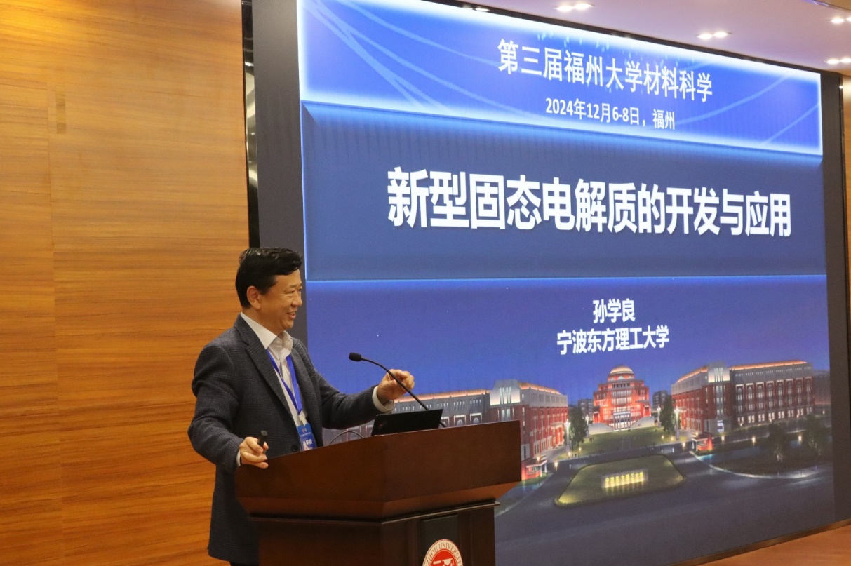 12月7日上午的论坛共有2个大会报告和4个邀请报告。首先由中国工程院外籍院士、加拿大皇家科学院院士和加拿大工程院院士、宁波东方理工大学孙学良教授以“新型固态电解质的开发与应用”为题,指出了固态电解质是全固态电池关键的、决定的组成部分,常用的硫化物、氧化物和聚合物三种固态电解质材料体系不能完全满足全固态锂电池要求,很难同时解决电解质的高离子导、与电极的稳定界面和工程化电池等巨大挑战,因此迫切需要发展新型固态电解质。孙院士详细地介绍了课题组在卤化物和氮化物基固态电解质的开发进展,同时也讨论了固态电池的设计思路和今后的可能发展方向。