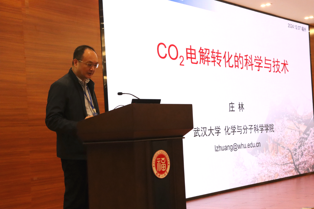 第二个报告来自国家杰出青年科学基金获得者、国家高层次人才、武汉大学庄林教授。庄教授以“CO2电解转化的科学与技术”为题,指出近年来CO2电还原研究备受关注,CO2电解转化技术发展迅速。然而,在科学上如何进一步提升CO2电还原的催化选择性,在技术上如何以工业级电流密度实现CO2电解转化,仍是此领域当前面临的挑战。庄教授详细介绍了课题组近年来在CO2电还原与电解转化方面的研究进展,包括提升电催化选择性的表面化学场耦合策略,以及实现工业级电流密度的碱性膜CO2电解器研究。