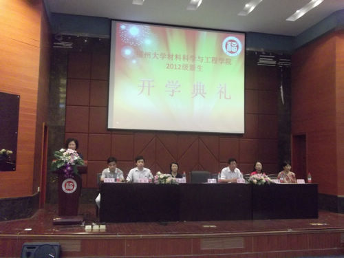 2012级新生开学典礼于嘉锡厅一楼报告厅隆重举行。院党委书记徐雪玉、院长李强、副院长李湘祁、副院长郑玉婴、教师代表朱定一、高分子材料工程系主任吕秋丰、无机非金属材料系主任林枞、院办公室主任陈宝榕、院团委书记卢杰、院教学干事黄艳以及各年级辅导员和来自五湖四海的150名新生共同参与了这一盛事。典礼由院党委副书记陈伟民主持。