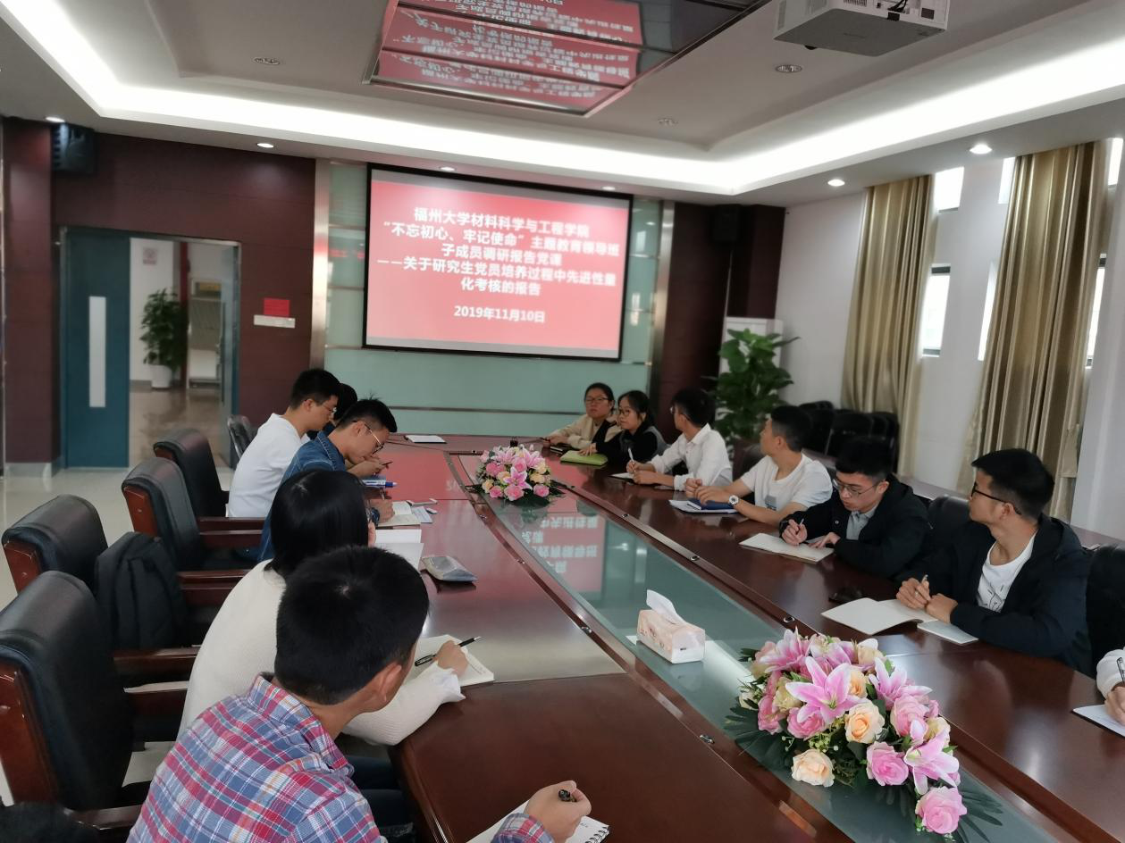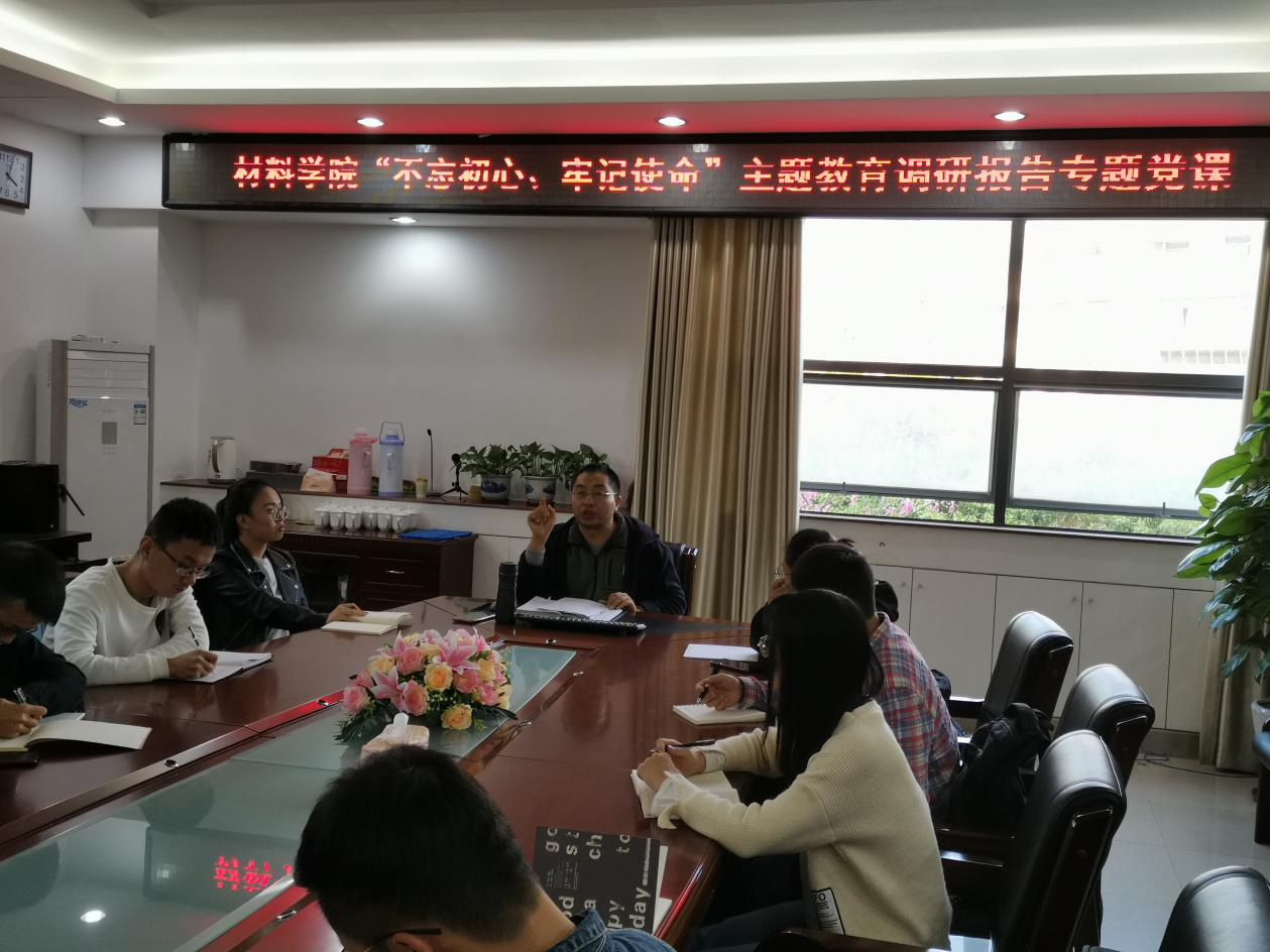 11月10日下午,成人影片 “不忘初心、牢记使命”主题教育调研报告专题党课于材料楼313室顺利开展。本次党课由成人影片 党委副书记王剑龙老师主讲,辅导员王文栋老师及成人影片 全体研究生入党培养人参加本次党课。