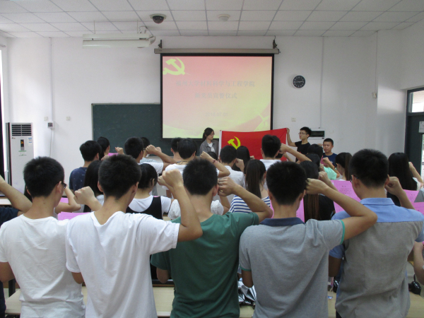 7月1日下午,成人影片 新发展党员宣誓仪式于西二104隆重举行。本次仪式由成人影片 党建辅导员张祥主持,成人影片 2014—2015年50余名新发展党员在鲜红的党旗下庄严宣誓。