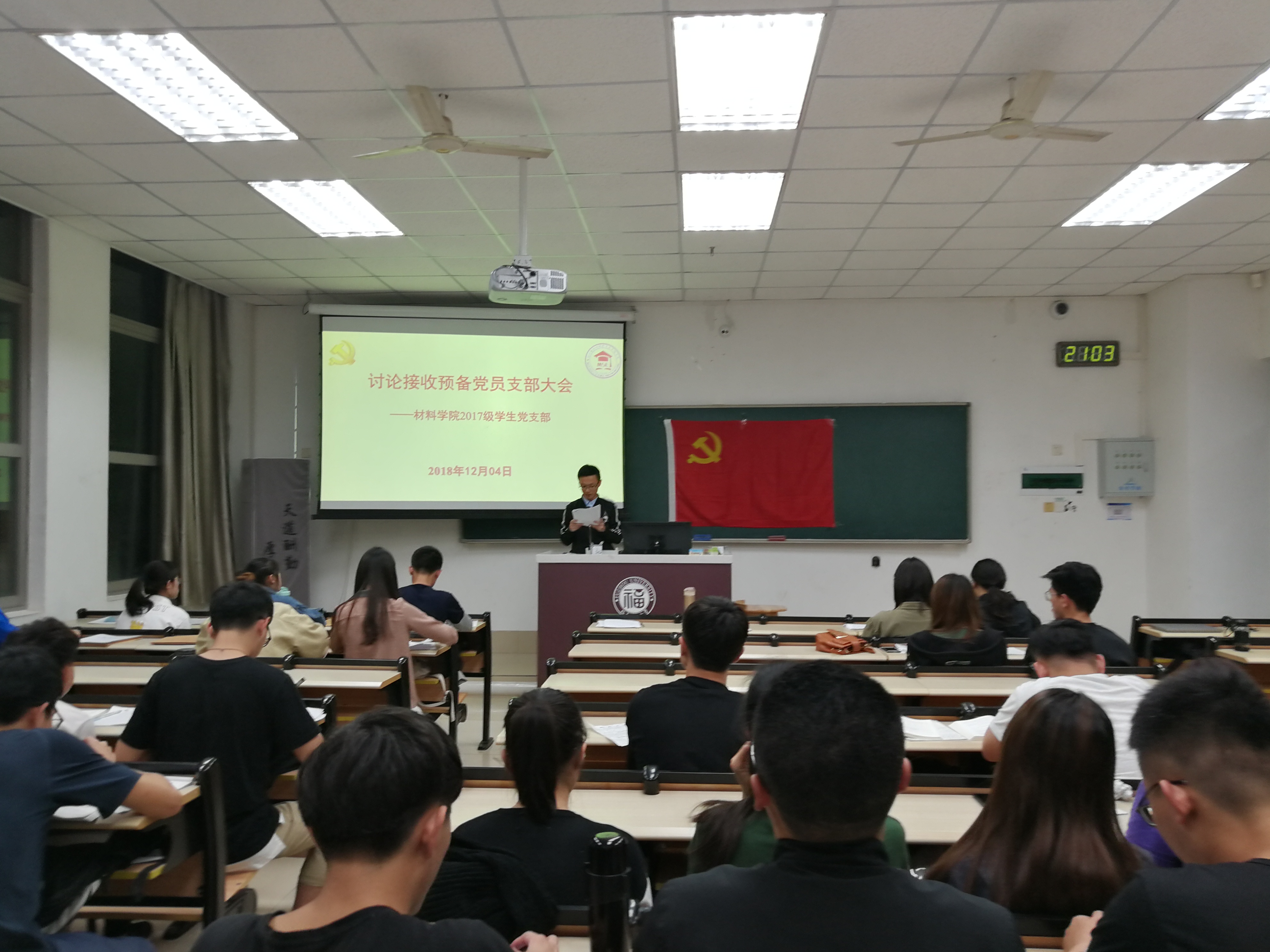 12月4日,成人影片 17级本科生讨论接收预备党员大会于西二406顺利举行。本次大会由辅导员王文栋老师主持,5名正式党员、6名发展对象和17级全体入党积极分子到场。
