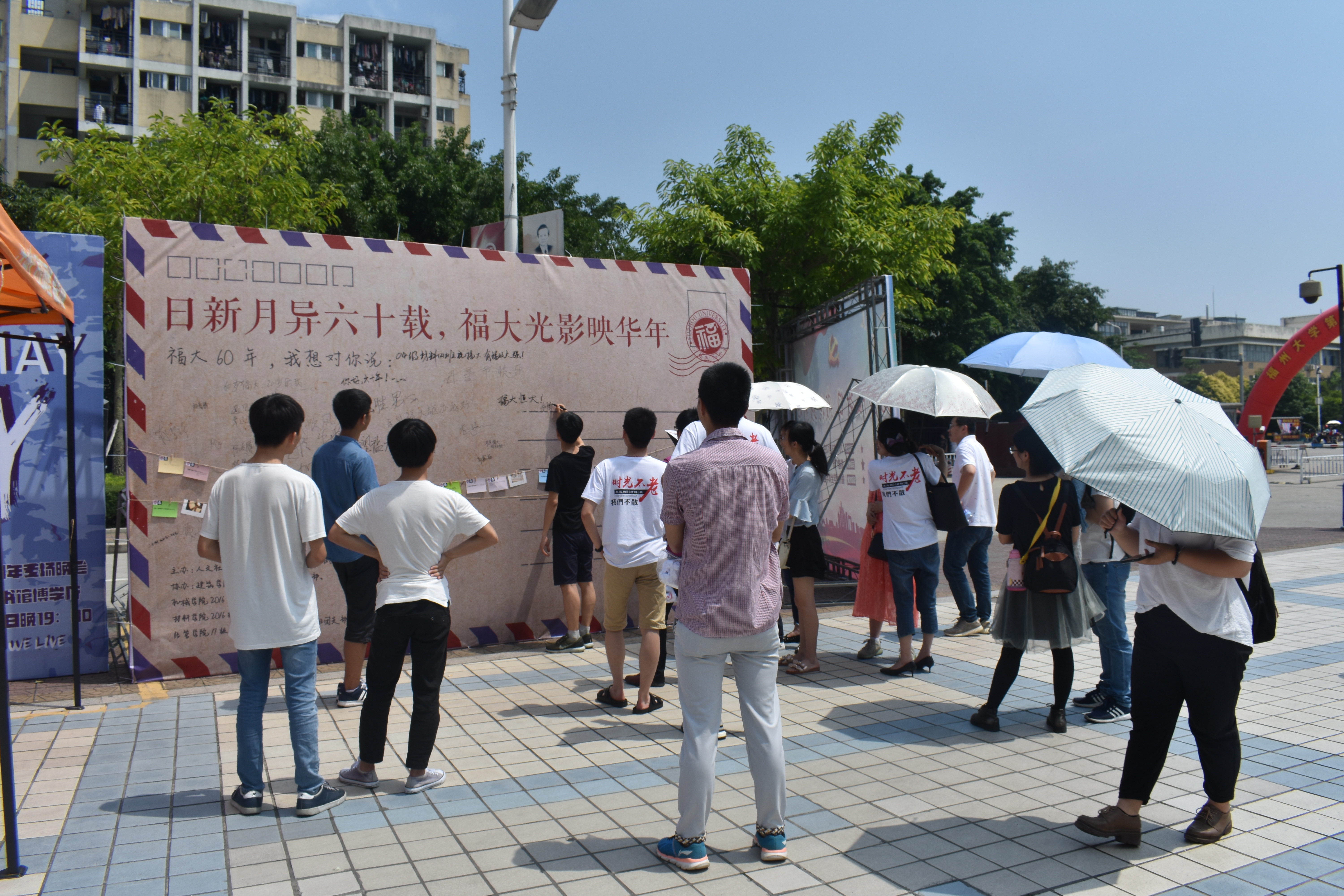“六十周年,我想对福大说_____”“何其有幸,我已经陪福大度过了她六十分之______的时光”“我对福大的第一印象是_______”。5月13日清晨的青春广场上,过往的同学们纷纷在展板前驻足,本次活动的展板背景是一封巨幅信封,而寄信人则是每一位福大学子。同学们都热情满满的为成人影片 寄上专属明信片,并在展板上踊跃留言。“有幸能陪你度过第60年,生日快乐!”“让福大见证我的成长,也让我见证福大的辉煌”。除此之外,留言板上还意外地汇集了来自福建师范大学、闽南师范大学等高校的学子祝福,而一则“04级材料2班祝福福大,有福极大强!”的留言更凝聚了13年前的校友深情,为此次活动增添了一份厚重情怀。
