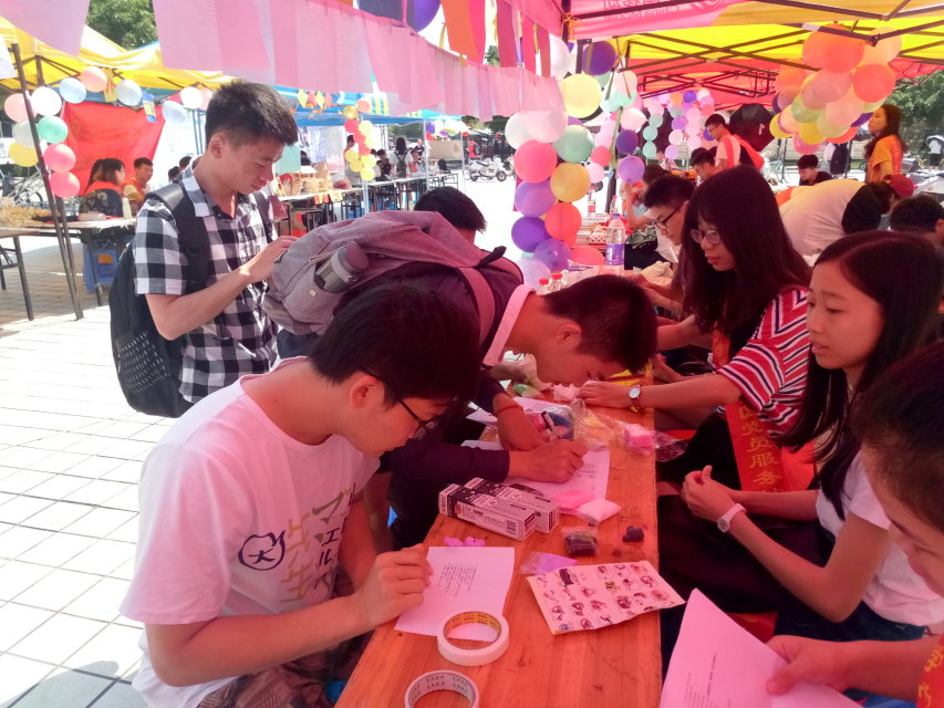5月12日,为响应学校对学生党员的党性教育,成人影片 积极参与了以“党员服务日,我行践我心”为主题的服务活动,在青春广场开展了以“创意改变生活,手工塑造人生”为主题的手工制作教学以及科技知识竞答活动。