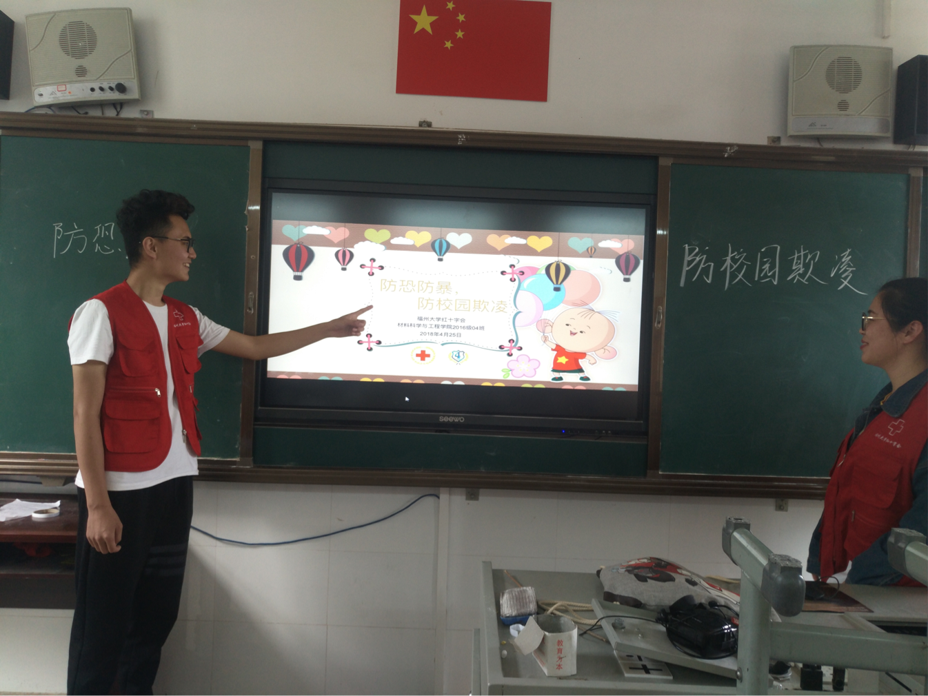 红十字会成员在美岐小学开展了“七彩课堂之防恐防暴防校园欺凌”志愿活动。