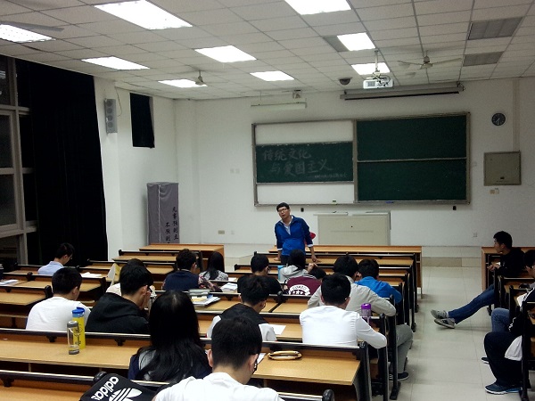 会议伊始,徐峰老师从自己出国留学的经历深入浅出的为支部成员讲解了他心中的爱国主义,其实爱国就是对自己国家的自信。接着,徐峰老师从中国源远流长、博大精深的中国文化谈及国家自豪感。以及通过举例向同学们阐述了传统文化的魅力,逐渐引导同学们去接触传统文化,爱上传统文化,继承和发扬传统文化,从而培养民族自豪感与爱国主义。本次主题班会作为同学们的精神引导,对同学的文化概念有极深的影响。随着徐峰老师的深入发言,同学们纷纷提出自己对爱国主义的看法与民族自豪感的共鸣,并就传统文化提及中华民族伟大复兴的中国梦。