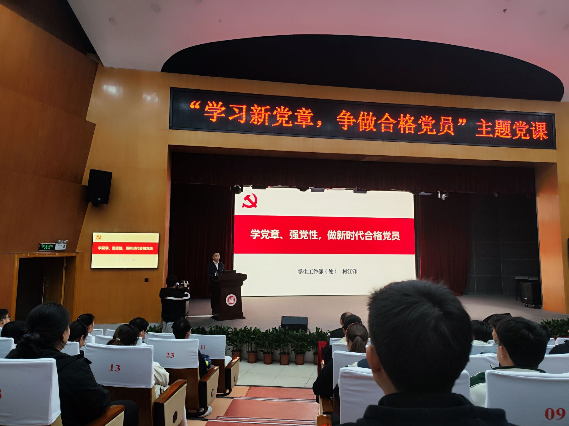 4月7日晚上,成人影片 化学科学与工程学部第一期暨成人影片 分党校第37期第一讲,于图书馆明德厅顺利进行。党课邀请到了学生工作部(处)柯江锋副部(处)长,讲授主题为《学习新党章,争做合格党员》。