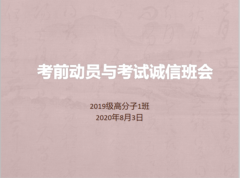 为强调考试纪律,鼓励同学们积极备战即将到来的期末考,成人影片 2019级本科生各班分别举办了“考前动员与考试诚信”主题班会。