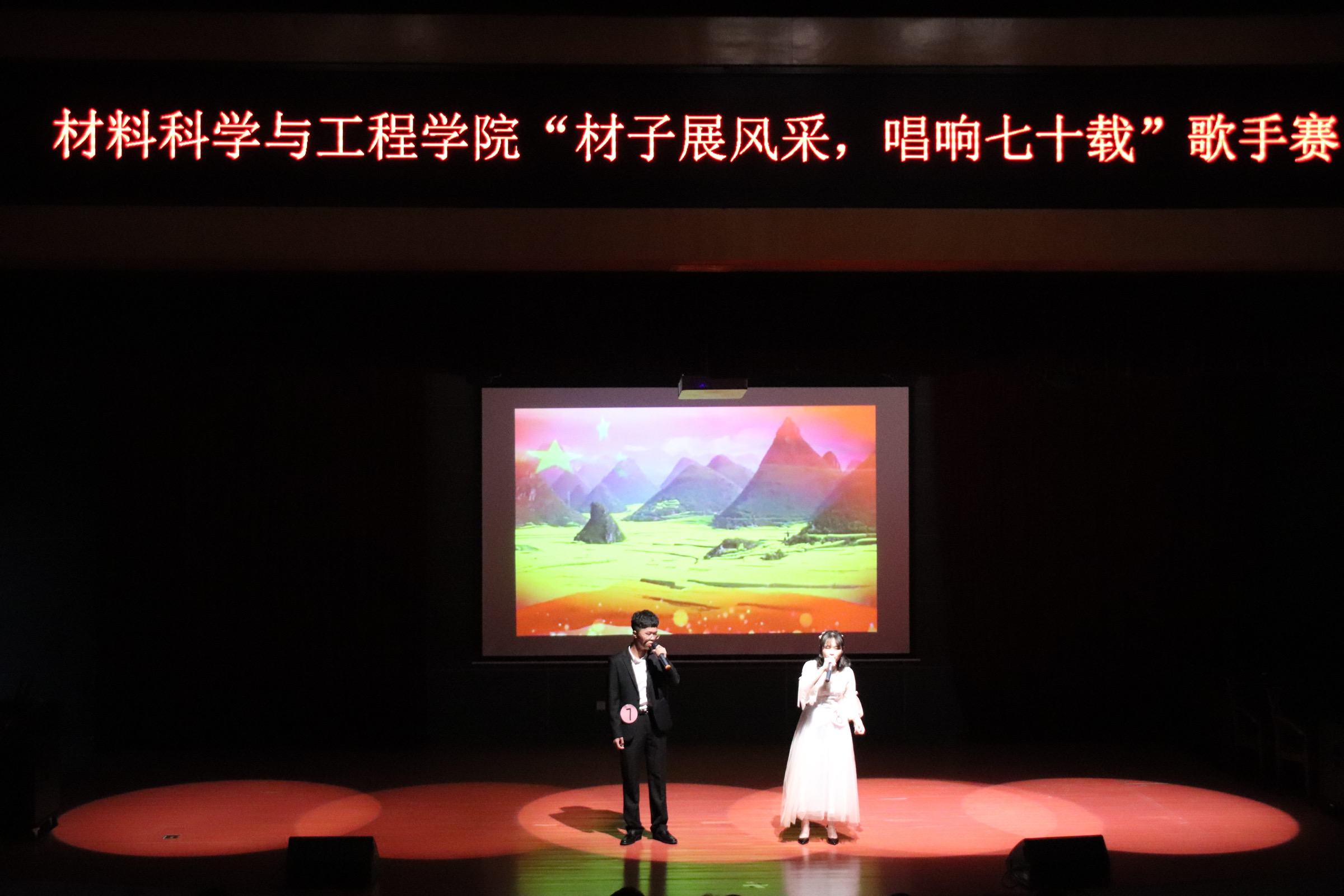 为庆祝祖国七十周年华诞,丰富同学们的课余文化生活以及展示成人影片 学生的文化风采,10月20日晚,由成人影片 文化部举办的 “材子展风采,唱响七十载 ”歌手大赛在明德厅顺利开展。成人影片 党委书记王剑龙、团委书记黄真、辅导员王文栋老师出席此次活动,全体19级本科学生、部分17、18级本科学生参加此次活动。