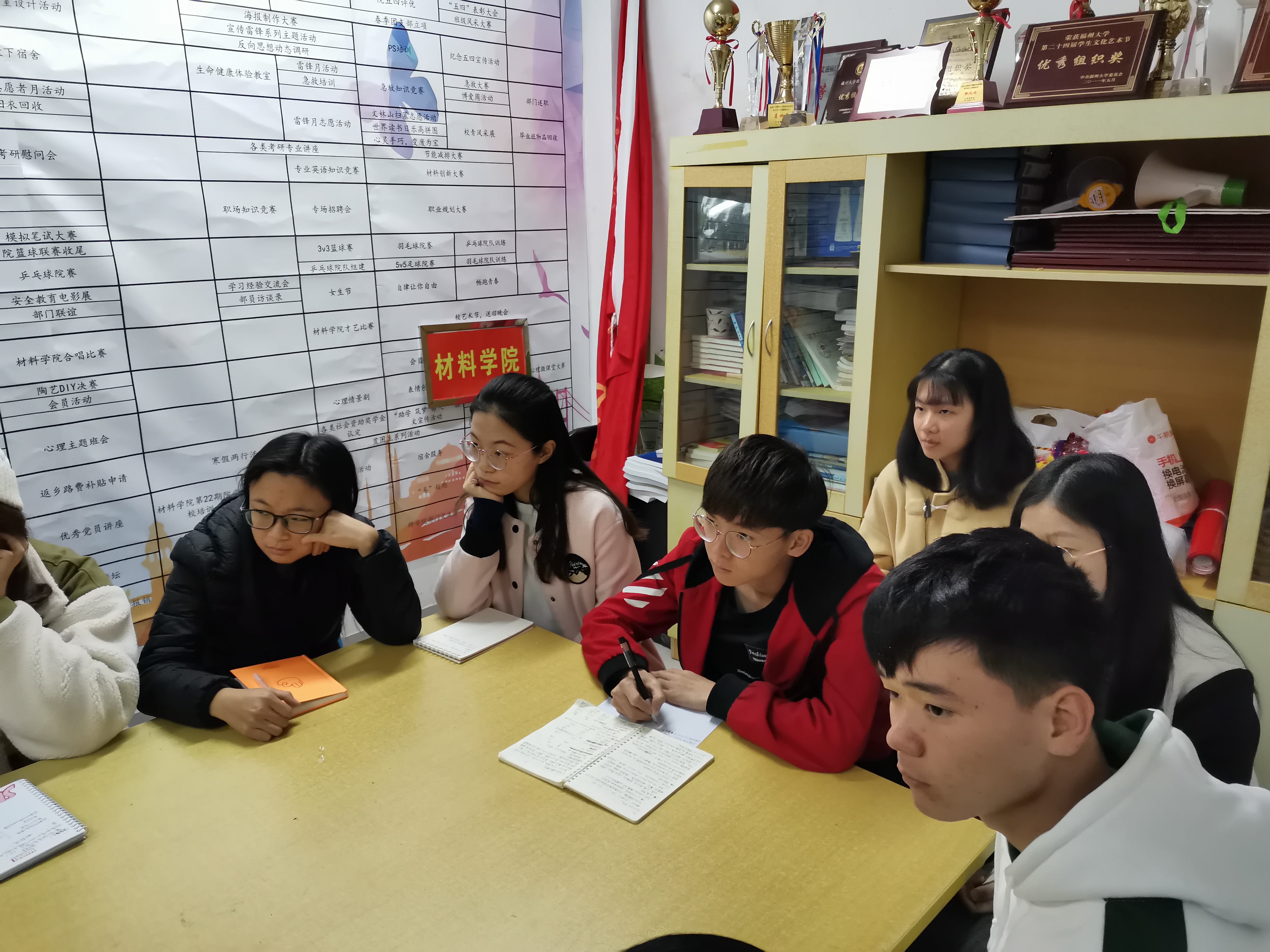 会议伊始,王文栋老师先告知了大家2019级1班获得校“十佳团支部”称号的喜讯,他在表示希望大家向19级1班团支部学习的同时也指出了各支部团立项活动成员参与度不高、展示不够精彩等问题,要求各班加以重视和改进。随后,各班开始了近期工作汇报情况,从学风建设、活动开展、班级凝聚力建设等各方面入手,汇报了近期开展的工作情况并分析了其中存在的不足。王文栋老师在听完同学们的汇报后,对各班的汇报做出了评价。他提出,在下一阶段各班班长及团支书应将工作重心放在学风及考风建设上,营造出班级整体积极向上的氛围,为即将到来的考试月做好充足准备。最后,王文栋老师要求各班举行一次班会,对各班同学进行期末考动员及考风考纪强调,争取让整个班级在期末考中取得优异成绩。