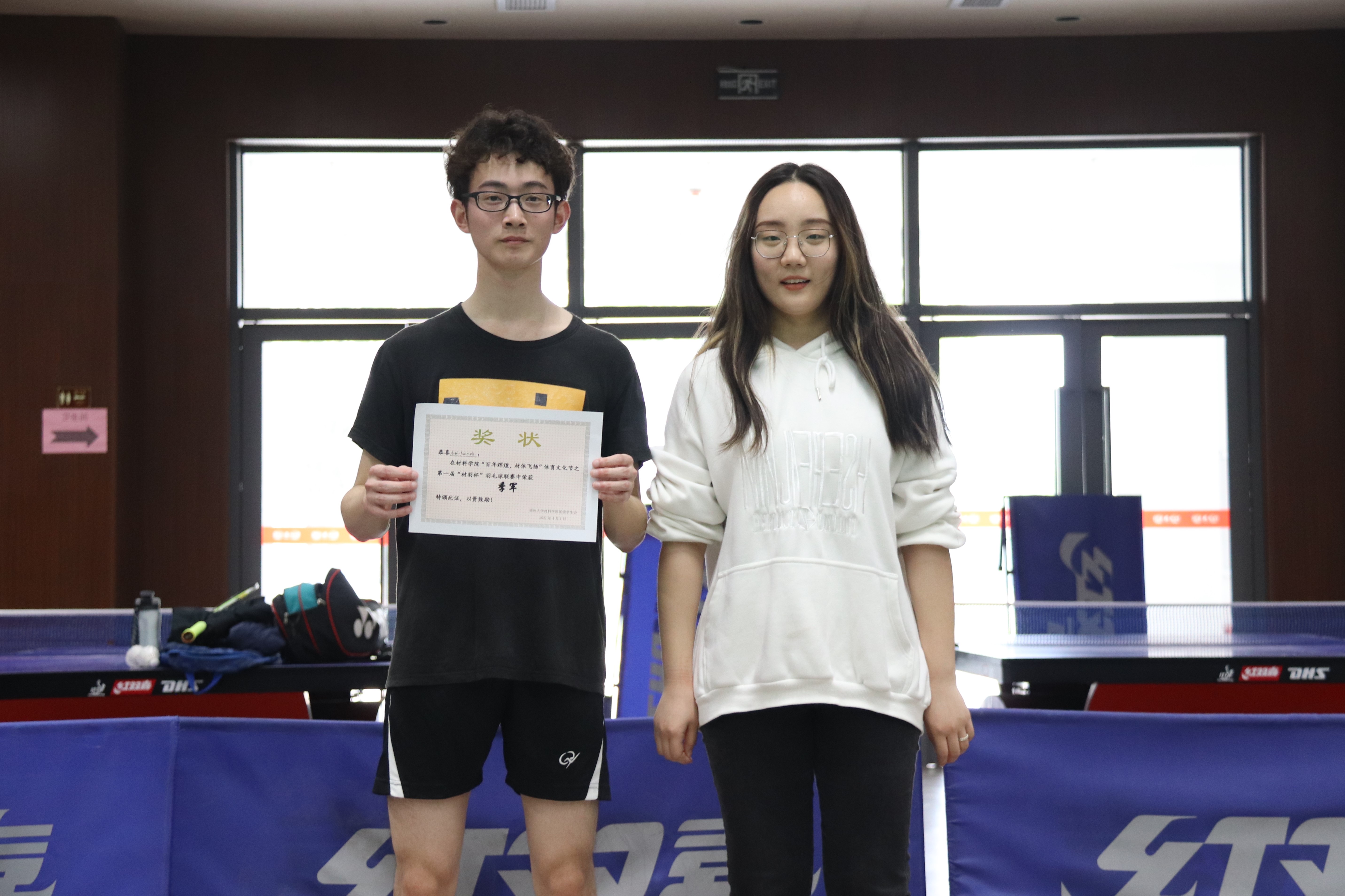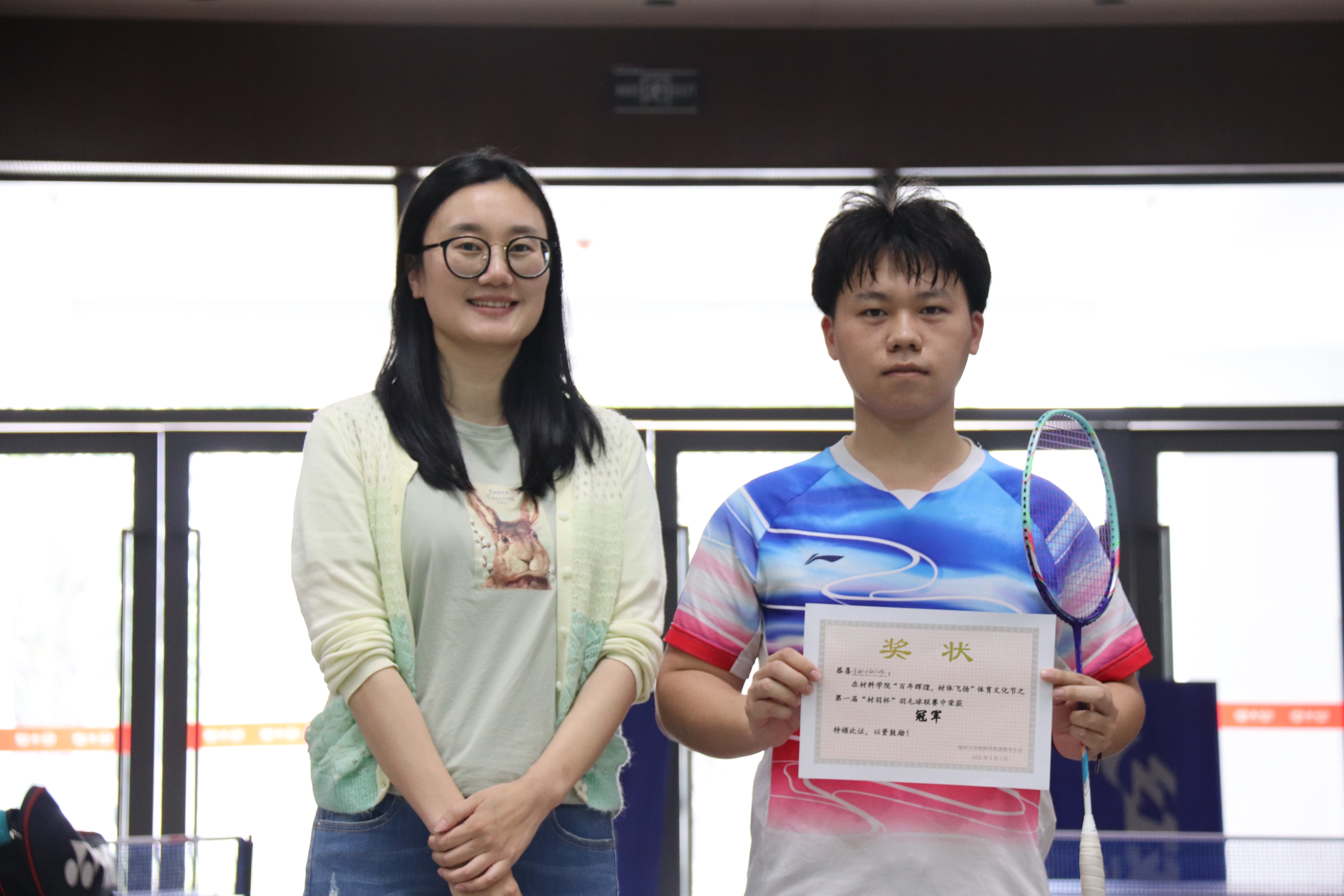 成人影片 团委学生会主席张晓晴和季军代表合影