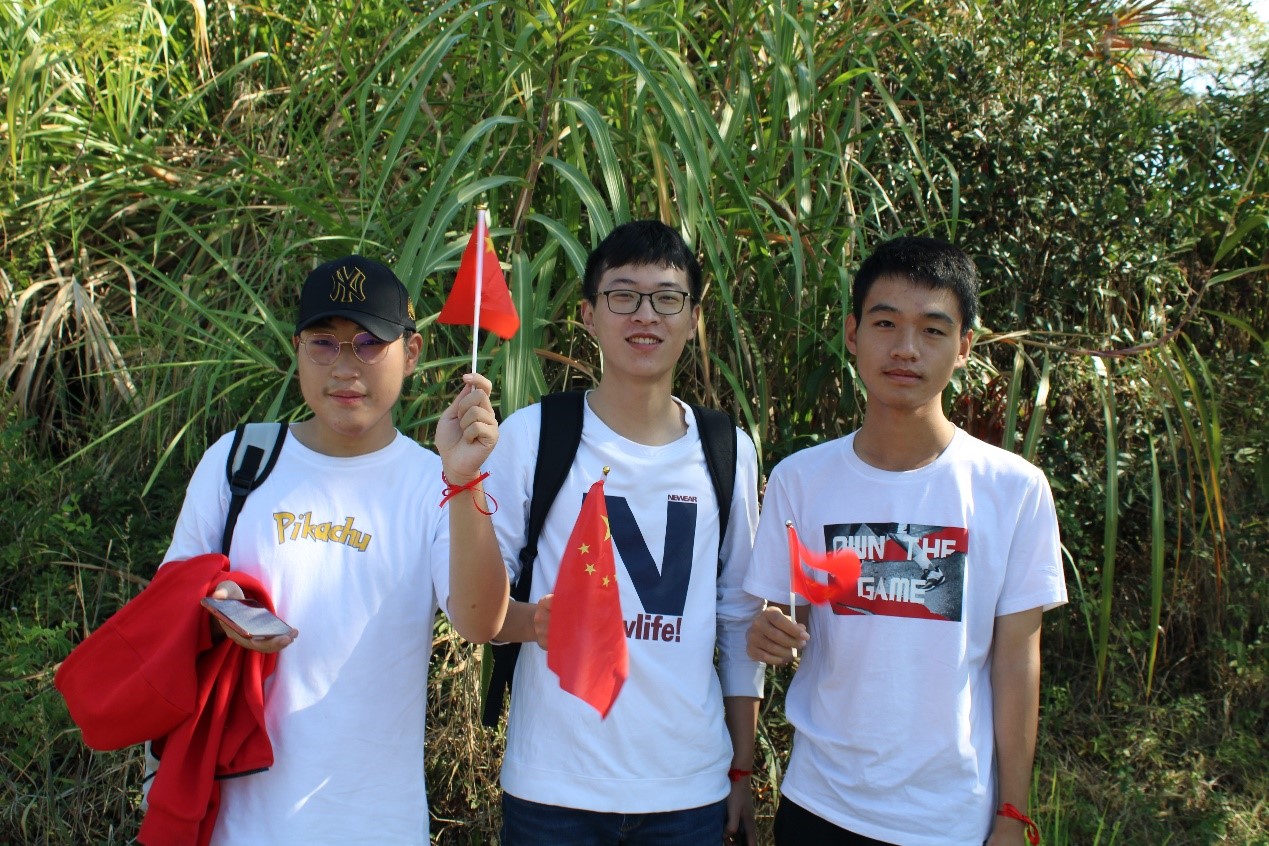 在活动中,同学们一起攀登了长湾山,并沿途在树上系上了代表我国民族团结的五十六条红丝带,最后,同学们在山顶齐唱《我和我的祖国》,为中国富强和民族团结献上了最美好的祝愿。