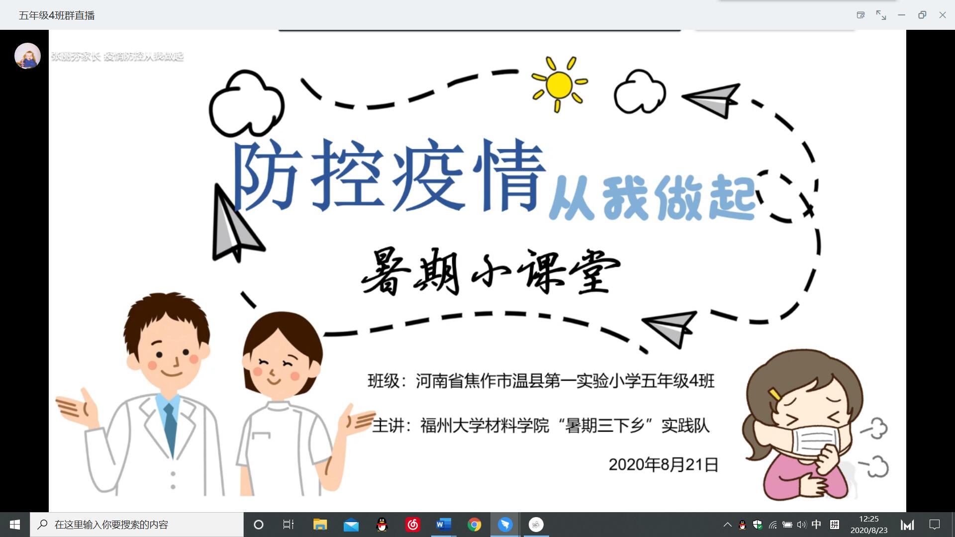 8月21日晚,成人影片 成人影片 三下乡实践队在线上进行了《防控疫情,从我做起》第二次暑期小课堂。实践队队员张丽芬与林福文是本次小课堂的主讲人。