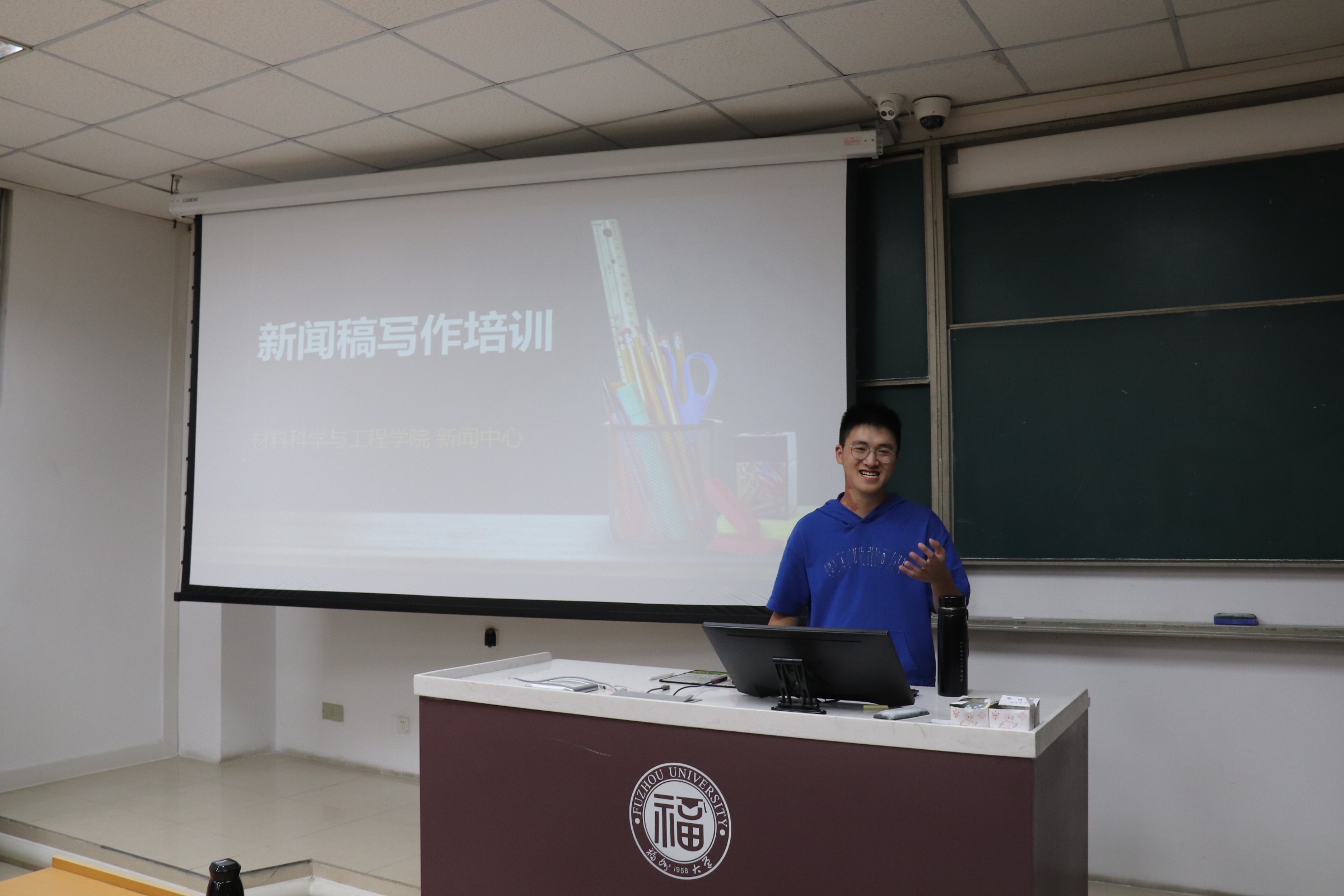 培训会上,郑何卓艺主要从投稿格式及写作方法两方面介绍了新闻报道的写作要点,并补充了撰写新闻稿时所需要注意的细节。开头的简述、中间的详写、结尾的升华,郑何卓艺同学层层递进,条理清晰地向同学们解说了新闻稿写作的框架与细节。紧接着,他把新闻稿分为“会议讲座”与“活动竞赛”两个大类,结合许多生动形象的范例展开阐述,加深了同学们对写作技巧的理解。最后,郑何卓艺同学着重强调了在新闻稿写作时“实事求是”的重要性,体现了新闻工作者的强烈责任感。郑何卓艺同学详尽细致的讲述使同学们受益匪浅,为材料学子徐徐揭开了新闻稿写作的神秘面纱,培训也在热烈的掌声中落下帷幕。